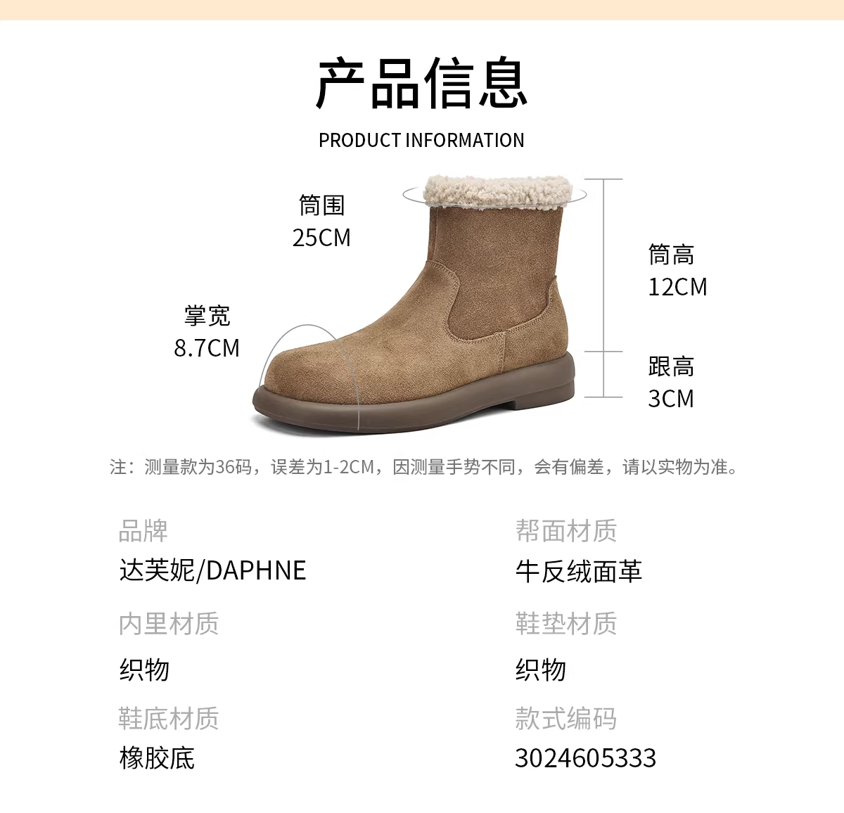 - Giày bốt tuyết Daphne dành cho nữ 2025, giày bốt mùa đông mới đế bằng có lông thú mềm mại, giày bốt cotton, giày bốt ngắn kiểu Birkenstock