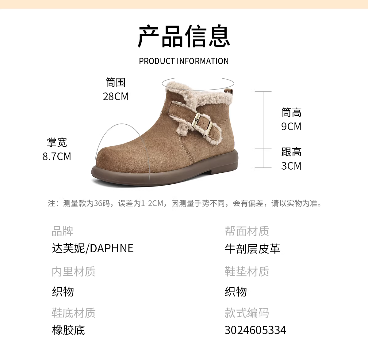 - Giày bốt tuyết Daphne dành cho nữ 2025, giày mùa đông mới, giày lông, giày cotton, giày đế dày, giày Birkenstock, giày bốt bông mềm, bốt ngắn