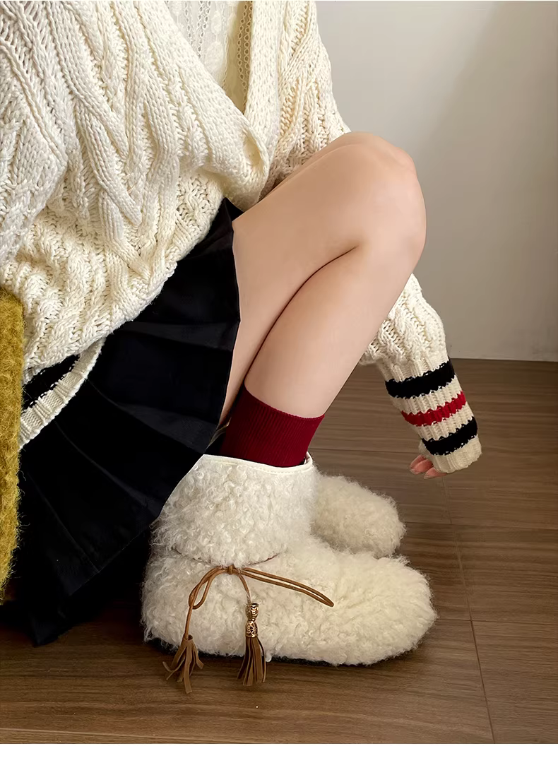 - Giày bốt tuyết đế dày chống trơn đa năng phong cách cổ điển dành cho nữ mùa đông 2025, lót lông cừu ấm áp, dày dặn