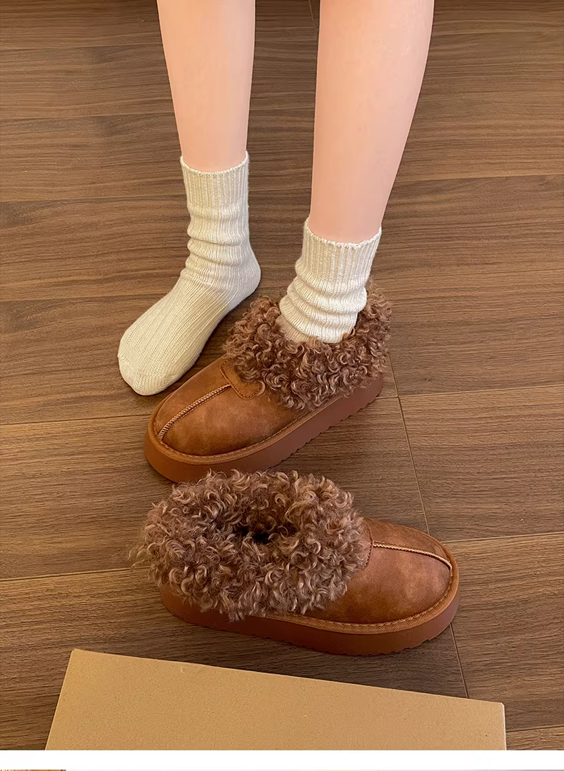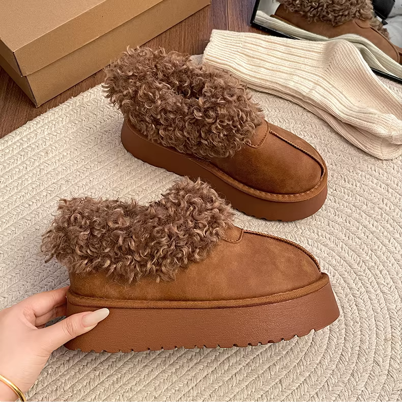 - Giày bốt tuyết đế dày cổ điển màu trắng dành cho nữ, giày bông lông dày giữ ấm mùa đông mới năm 2025.