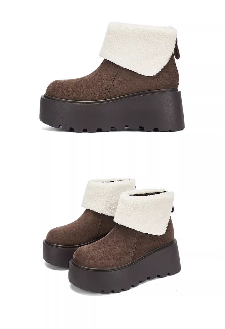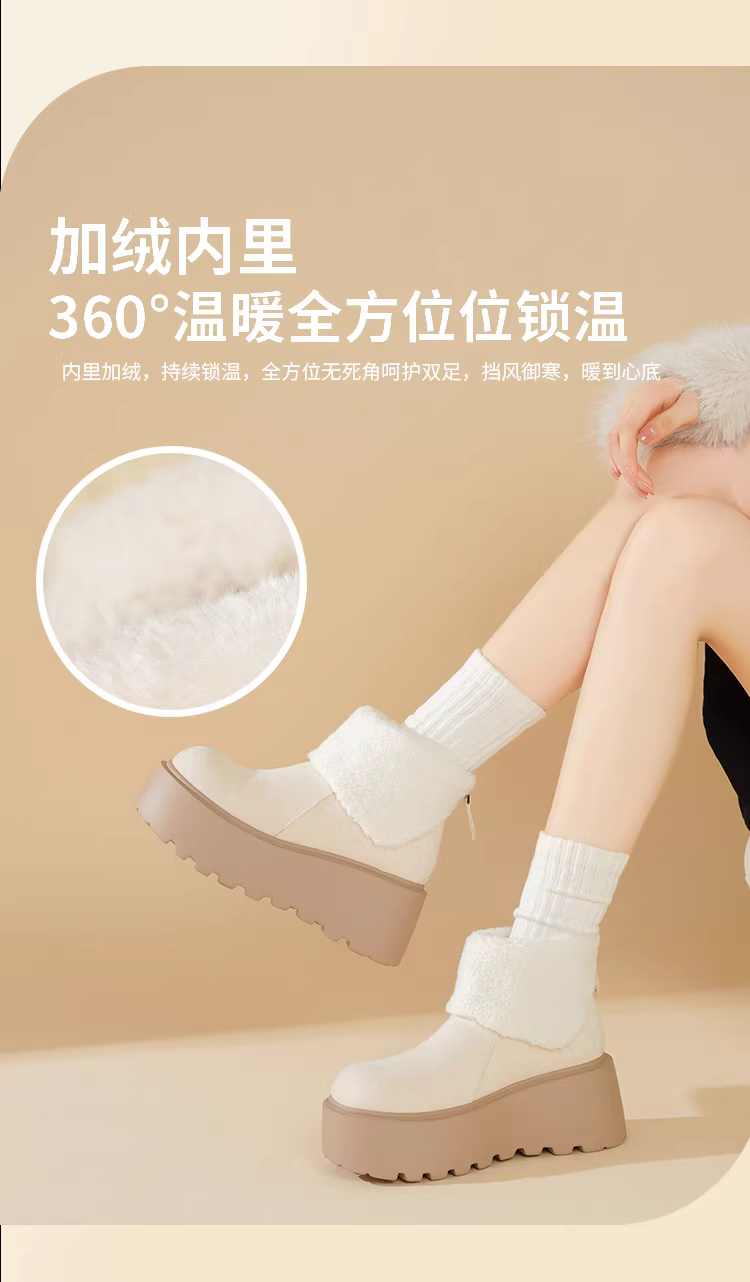 - Giày bốt tuyết đế dày Daphne dành cho nữ 2025, kiểu mới đa năng, màu trắng, cổ ngắn, lót lông cừu, giữ ấm, giày mùa đông nữ