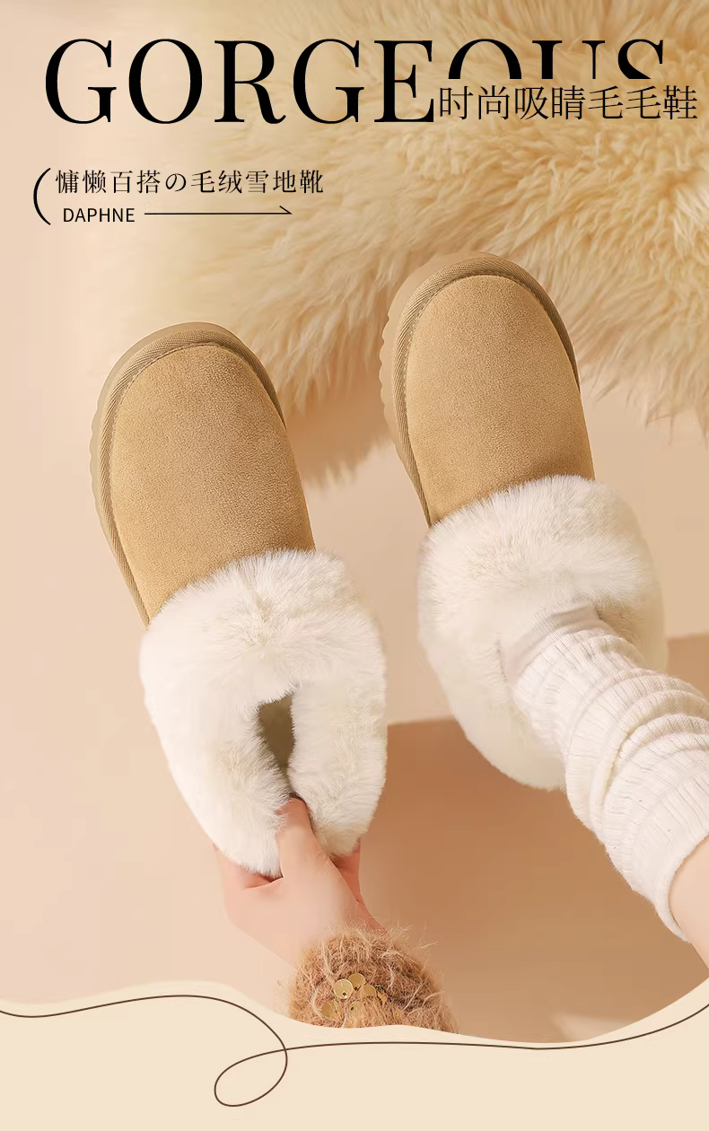 - Giày bốt tuyết đế dày Daphne dành cho nữ 2025, kiểu mới mùa đông, bốt ngắn ấm áp, giày lông mềm, giày bông Đông Bắc dành cho nữ