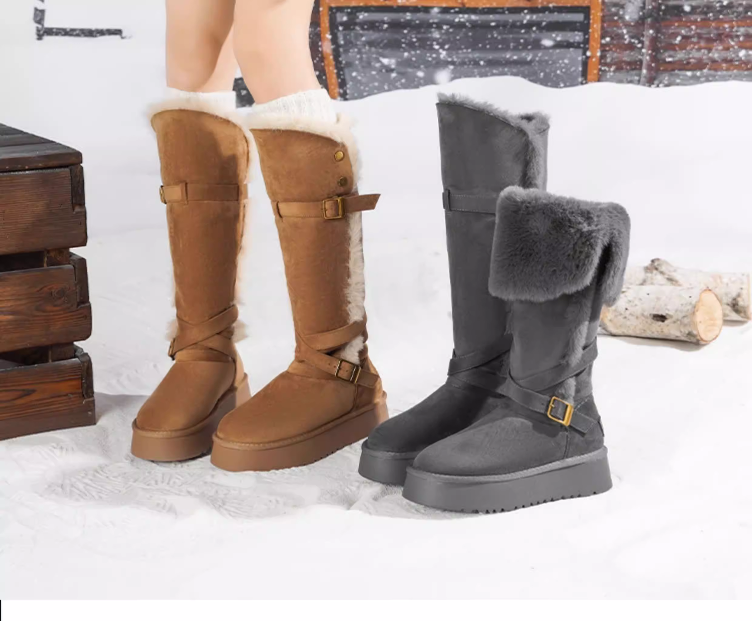 Giày bốt tuyết đế dày Daphne dành cho nữ 2025, kiểu mới mùa đông, lót lông cừu, siêu thời trang, cổ bo, dài, giữ ấm bằng cotton dành cho nữ mùa đông