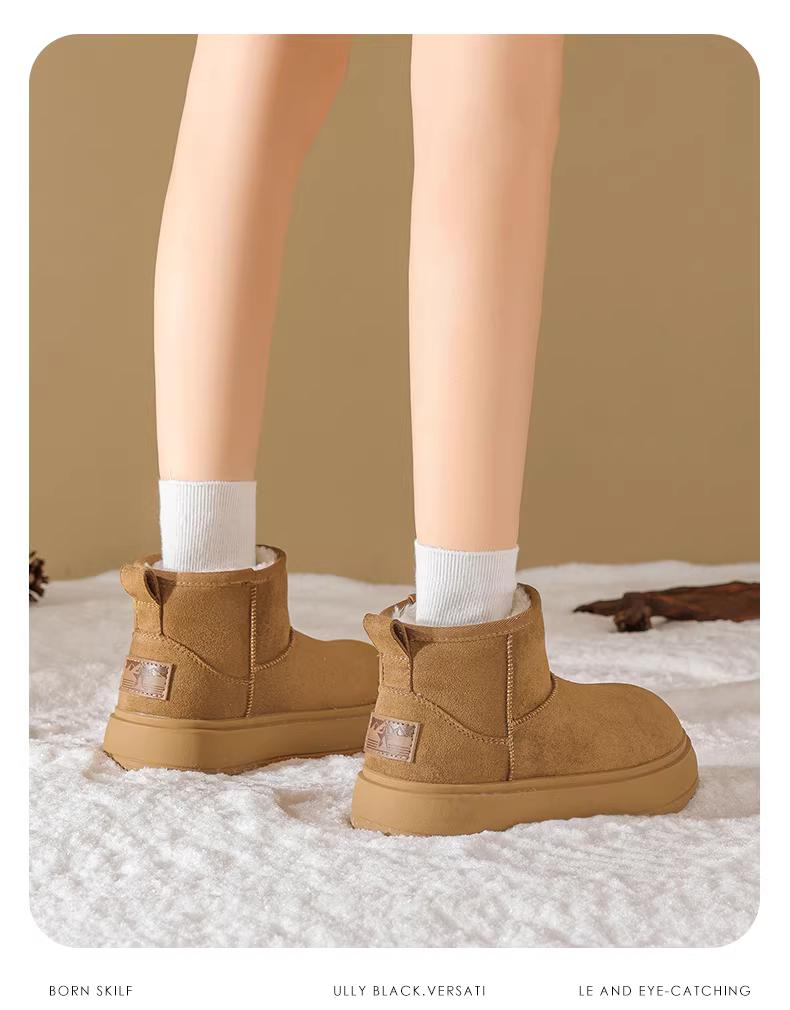 Giày bốt tuyết đế dày Daphne dành cho nữ 2025, kiểu mới mùa đông, lót lông giữ ấm, chống trơn trượt, kiểu Birkenstock, bốt ngắn, giày cotton Đông Bắc