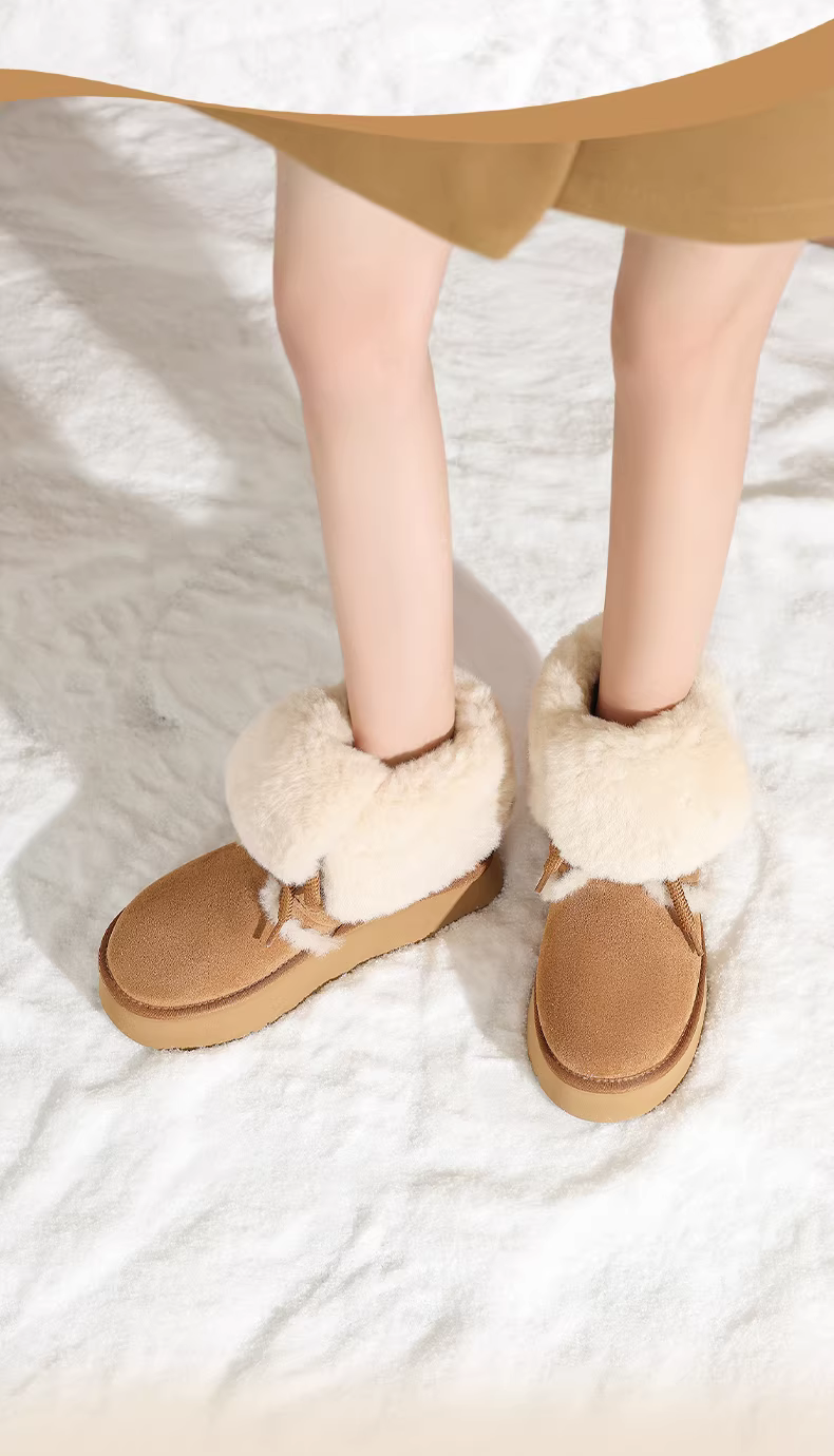 - Giày bốt tuyết đế dày Daphne dành cho nữ mùa đông 2025, chống thấm nước, chống trơn trượt, lót lông cừu, giữ ấm, giày bốt lông mềm
