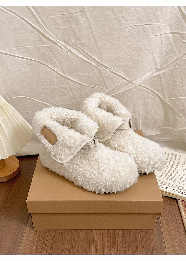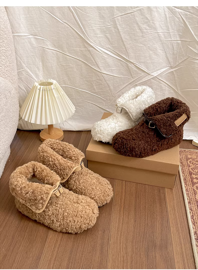 - Giày bốt tuyết đế dày giữ ấm kiểu cổ điển dành cho nữ, mẫu mới mùa đông 2025, lót lông cừu, dày dặn, chất liệu len cotton