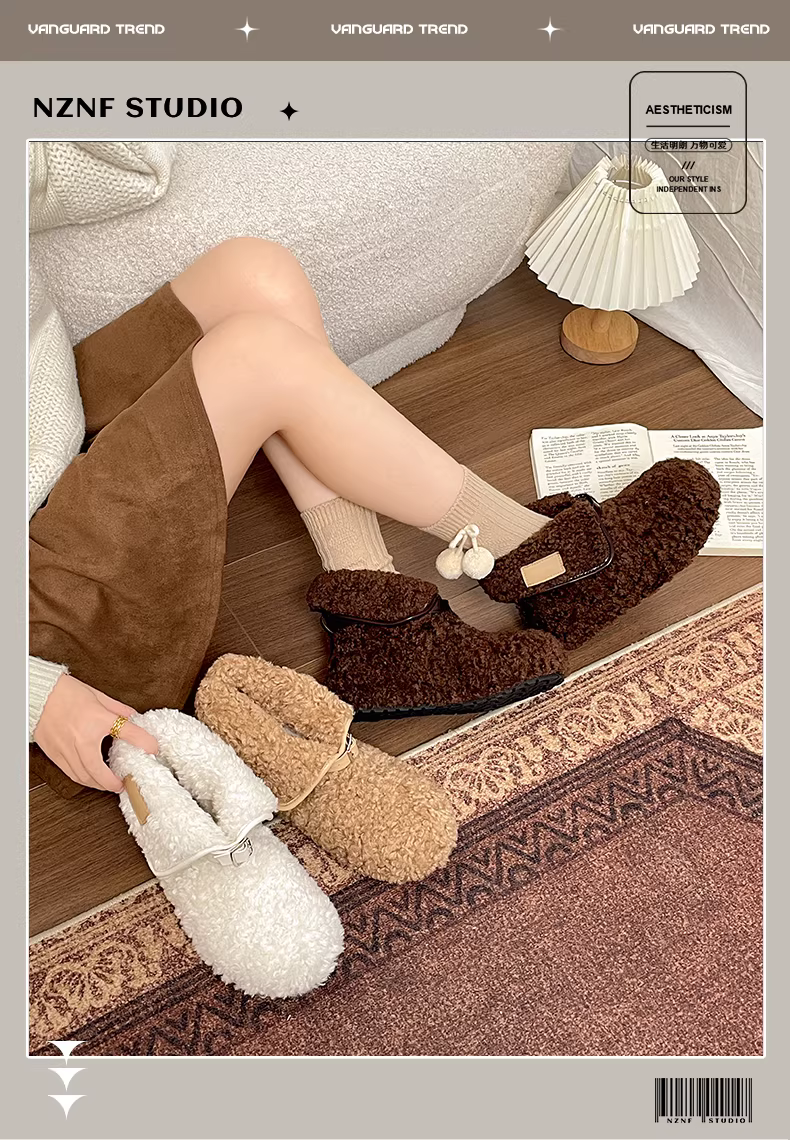 Giày bốt tuyết đế dày giữ ấm kiểu cổ điển dành cho nữ, mẫu mới mùa đông 2025, lót lông cừu, dày dặn, chất liệu len cotton