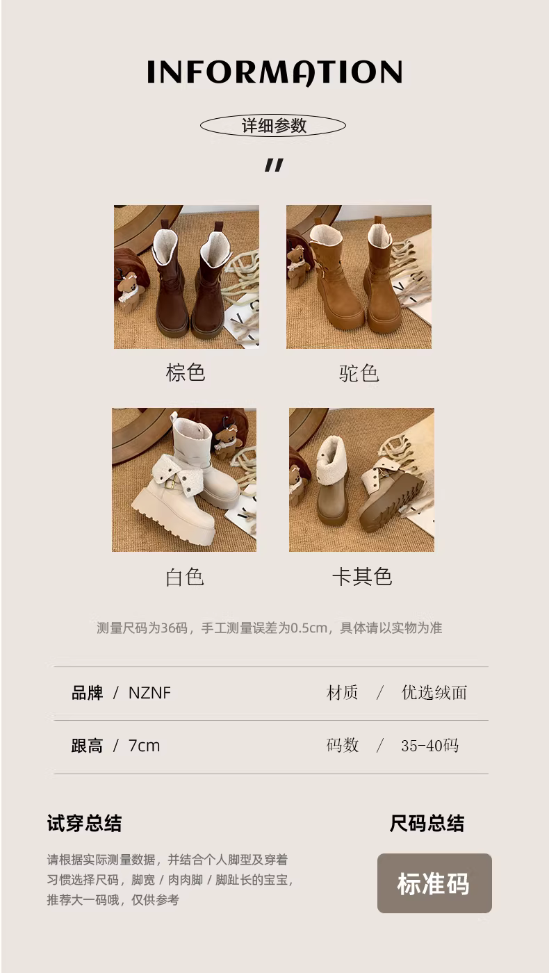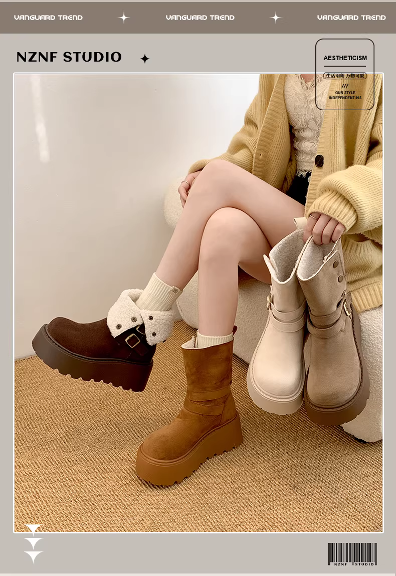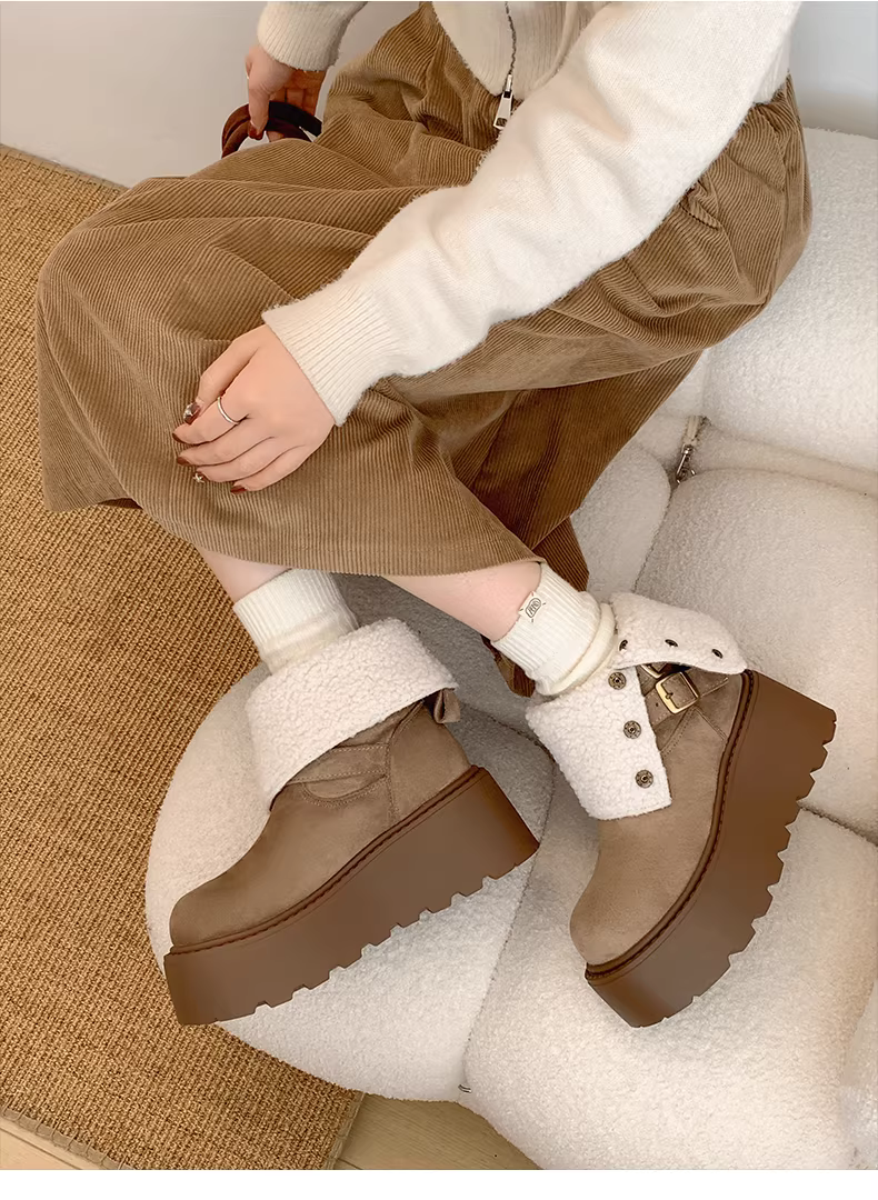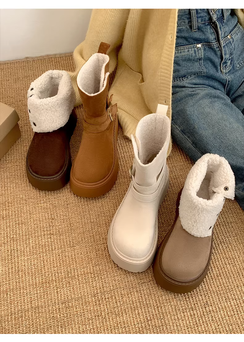 - Giày bốt tuyết đế dày kiểu Đông Bắc màu trắng dành cho nữ, mẫu mới mùa đông 2025, lót lông cừu, dày dặn, ấm áp.