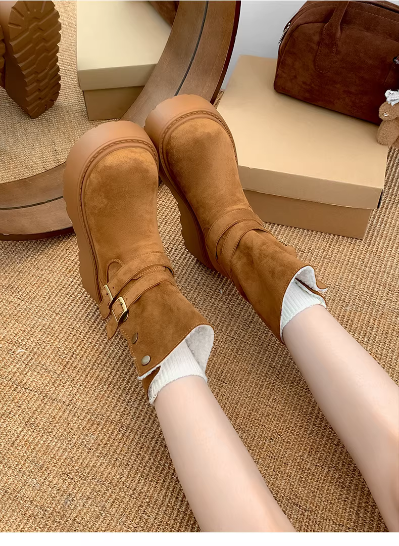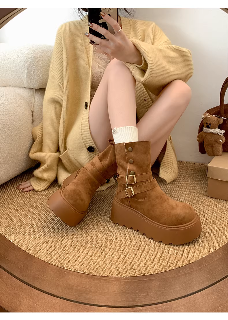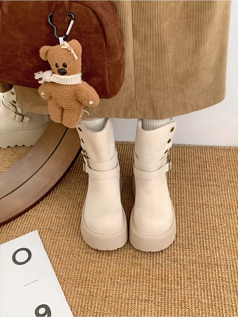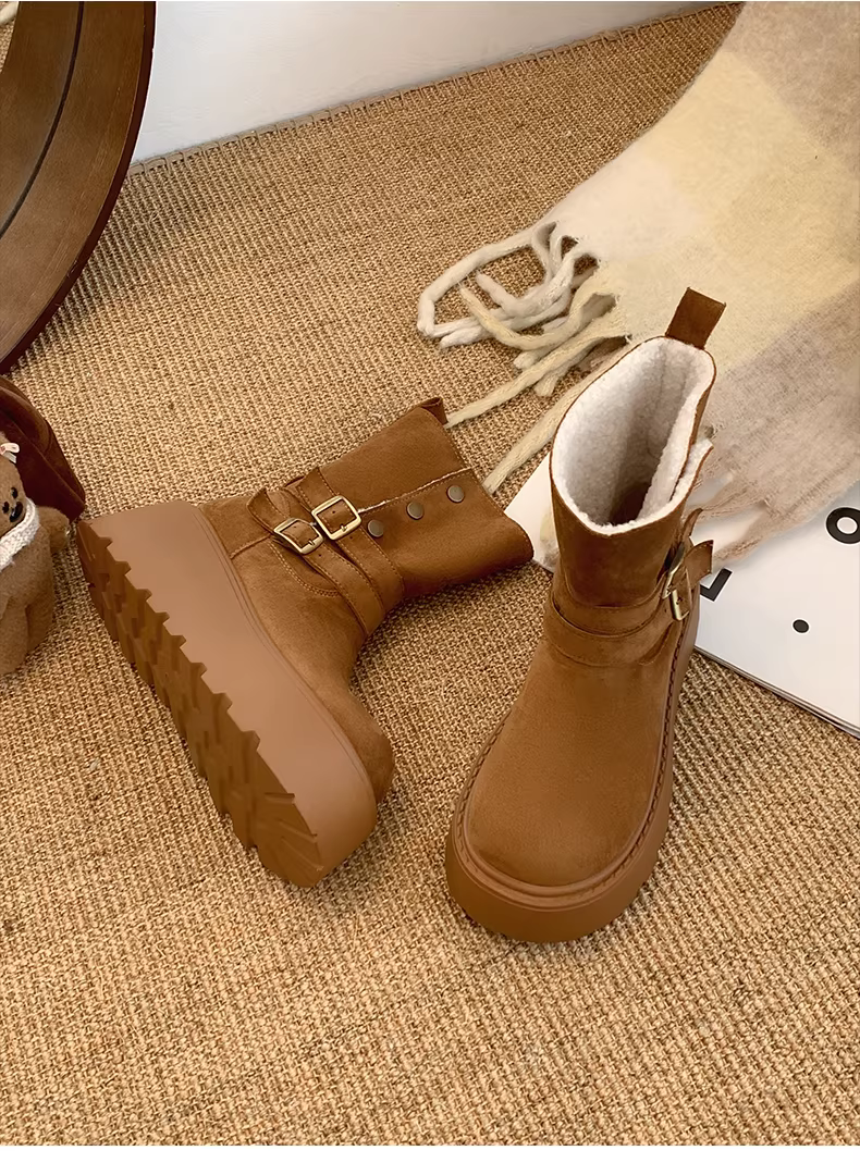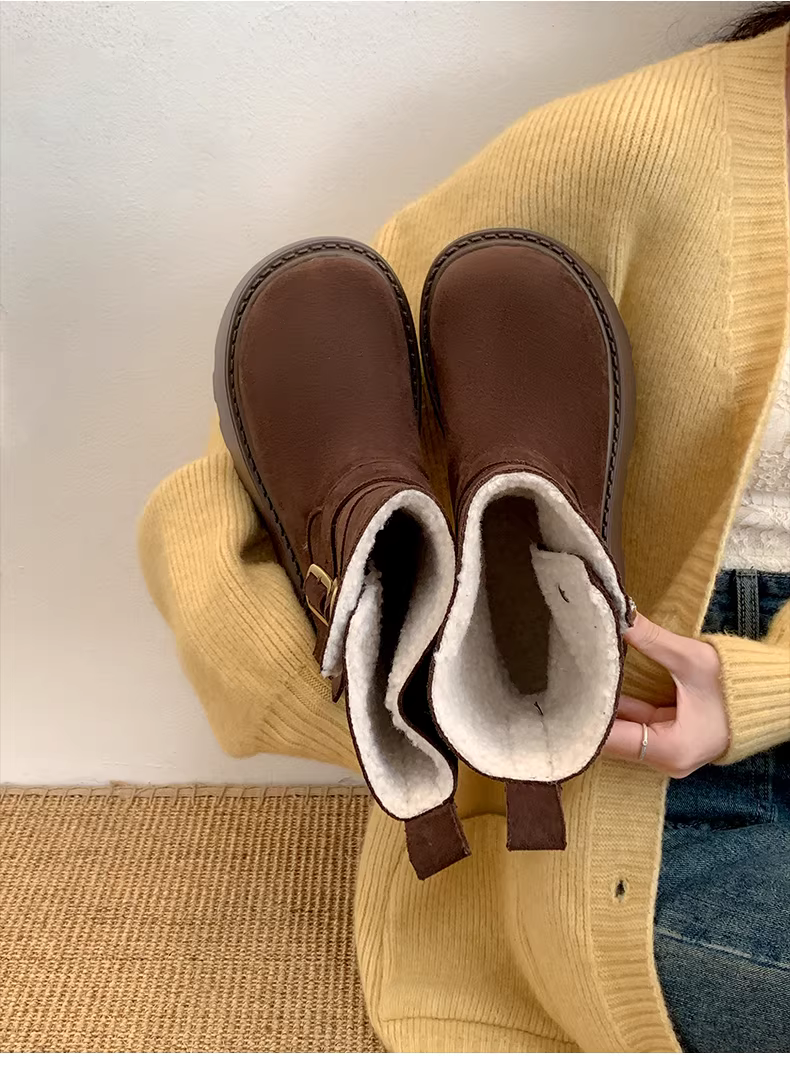 - Giày bốt tuyết đế dày kiểu Đông Bắc màu trắng dành cho nữ, mẫu mới mùa đông 2025, lót lông cừu, dày dặn, ấm áp.