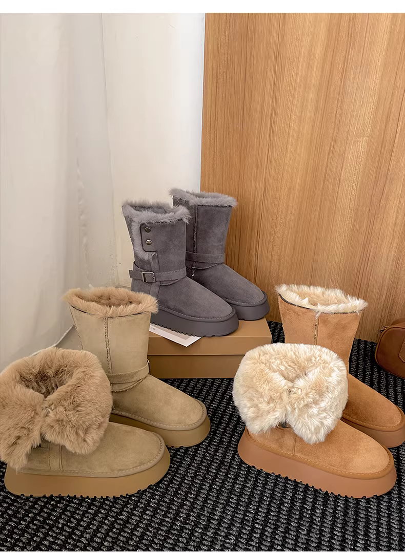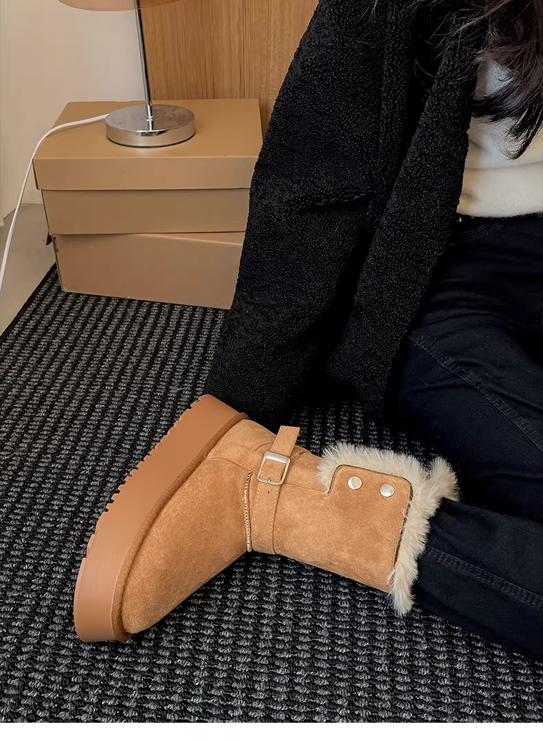 • Giày bốt tuyết đế dày lót lông cừu kiểu cổ điển dành cho nữ mùa đông 2025 mới, giữ ấm, chất liệu cotton Đông Bắc