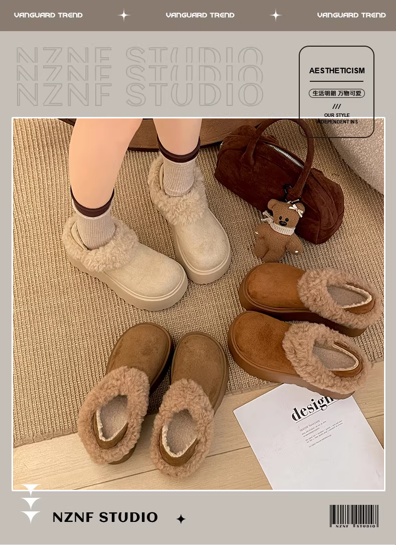- Giày bốt tuyết đế dày lót lông mềm kiểu cổ điển màu trắng dành cho nữ, giày cotton kiểu Birkenstock giữ ấm mùa đông mới năm 2025.