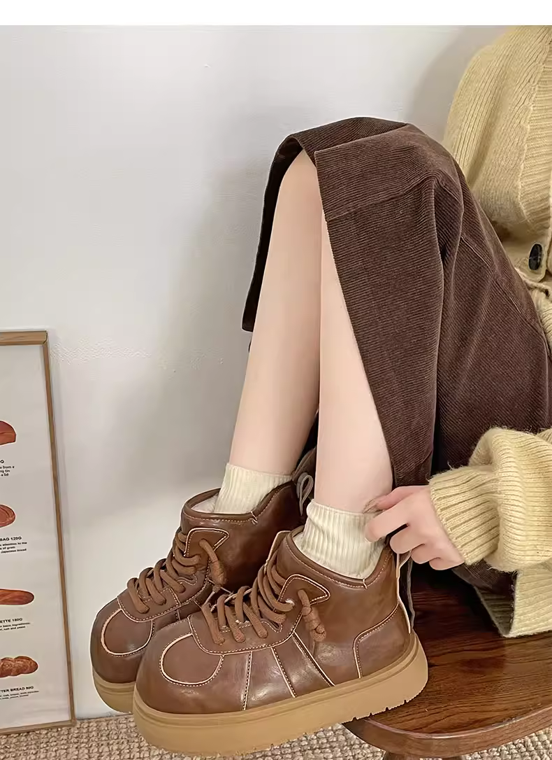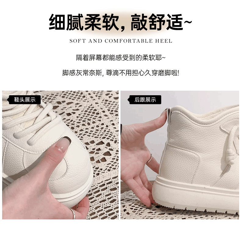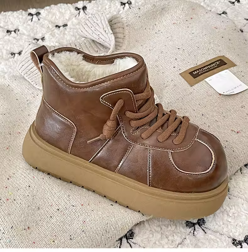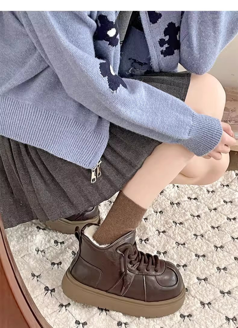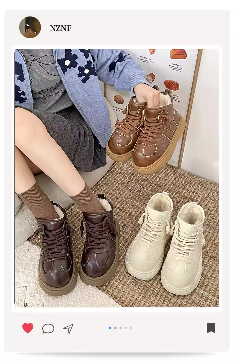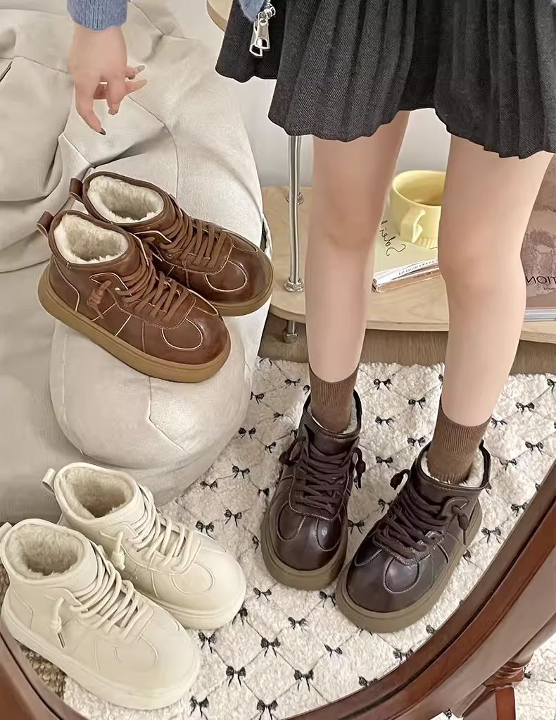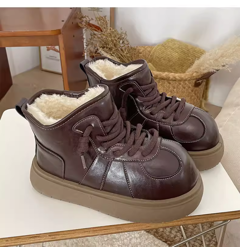 - Giày bốt tuyết đế dày màu trắng dành cho nữ, kiểu dáng mùa đông mới 2025, lót lông cừu, dày dặn, giày cotton ấm áp.