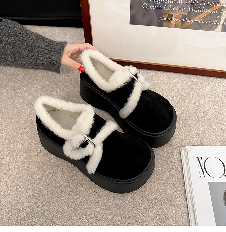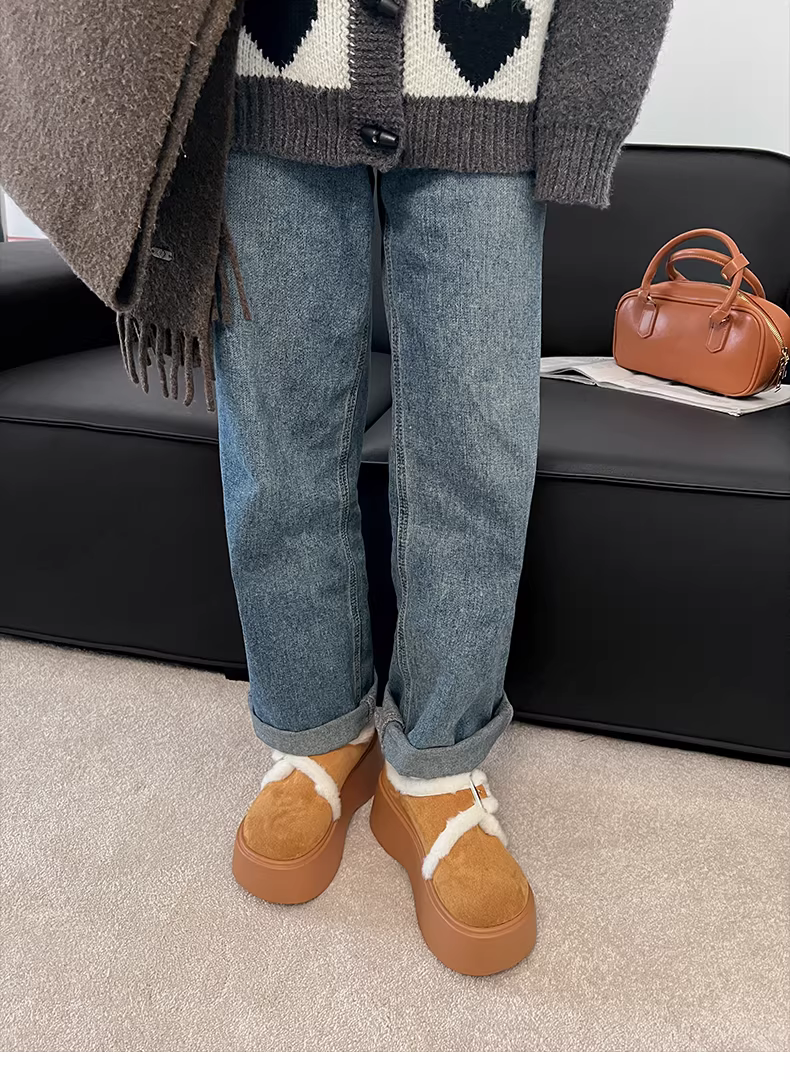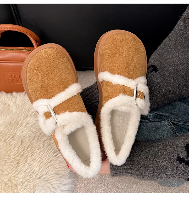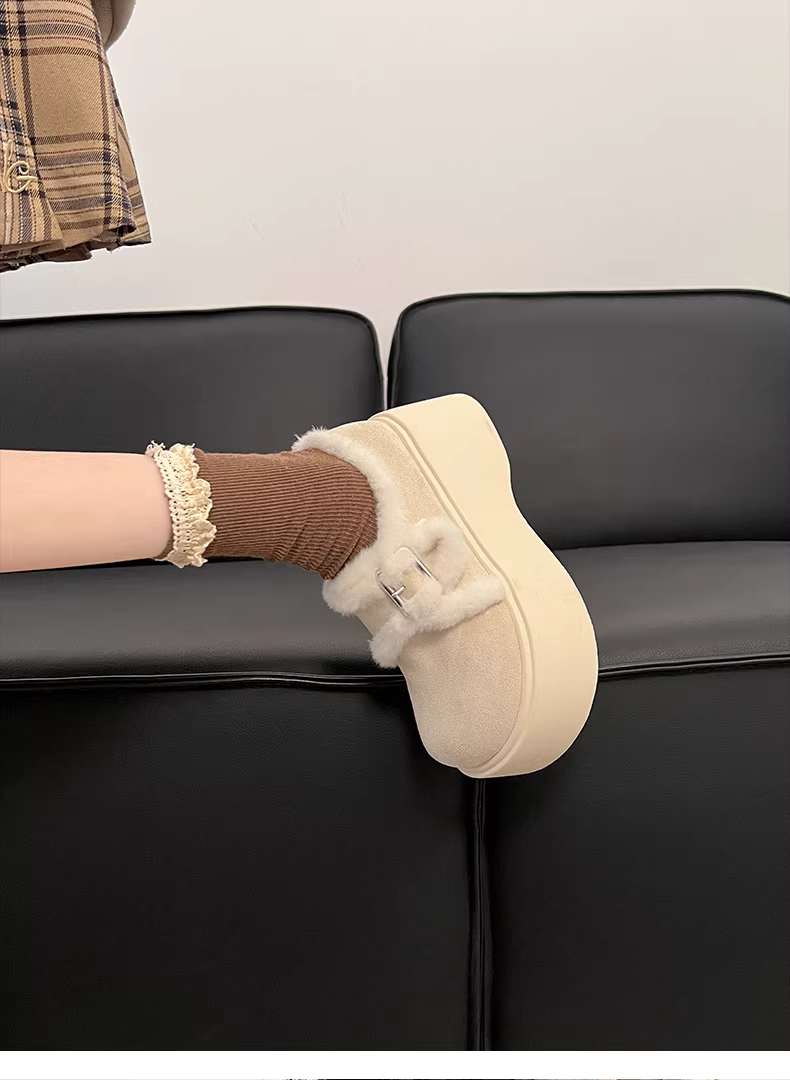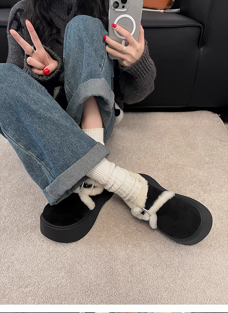 - Giày bốt tuyết đế dày phong cách retro màu trắng dành cho nữ, giày cotton ấm áp kiểu Birkenstock mới mùa thu đông 2025.