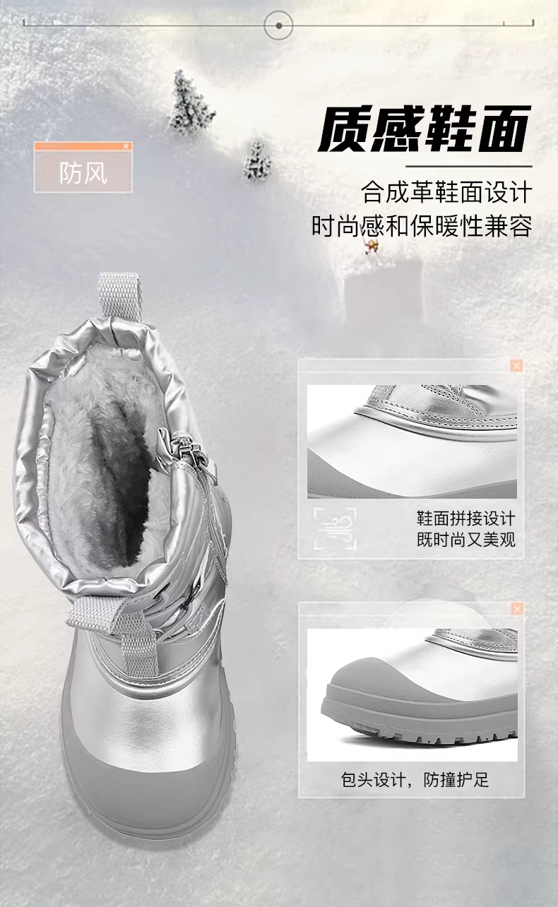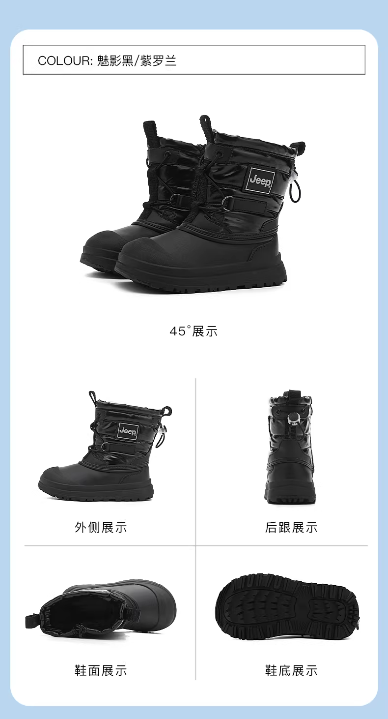 - Giày bốt tuyết giữ ấm lông thú tích hợp cho bé gái Jeep, giày bông trẻ em mùa đông 2025 mới, chống thấm nước, cỡ lớn