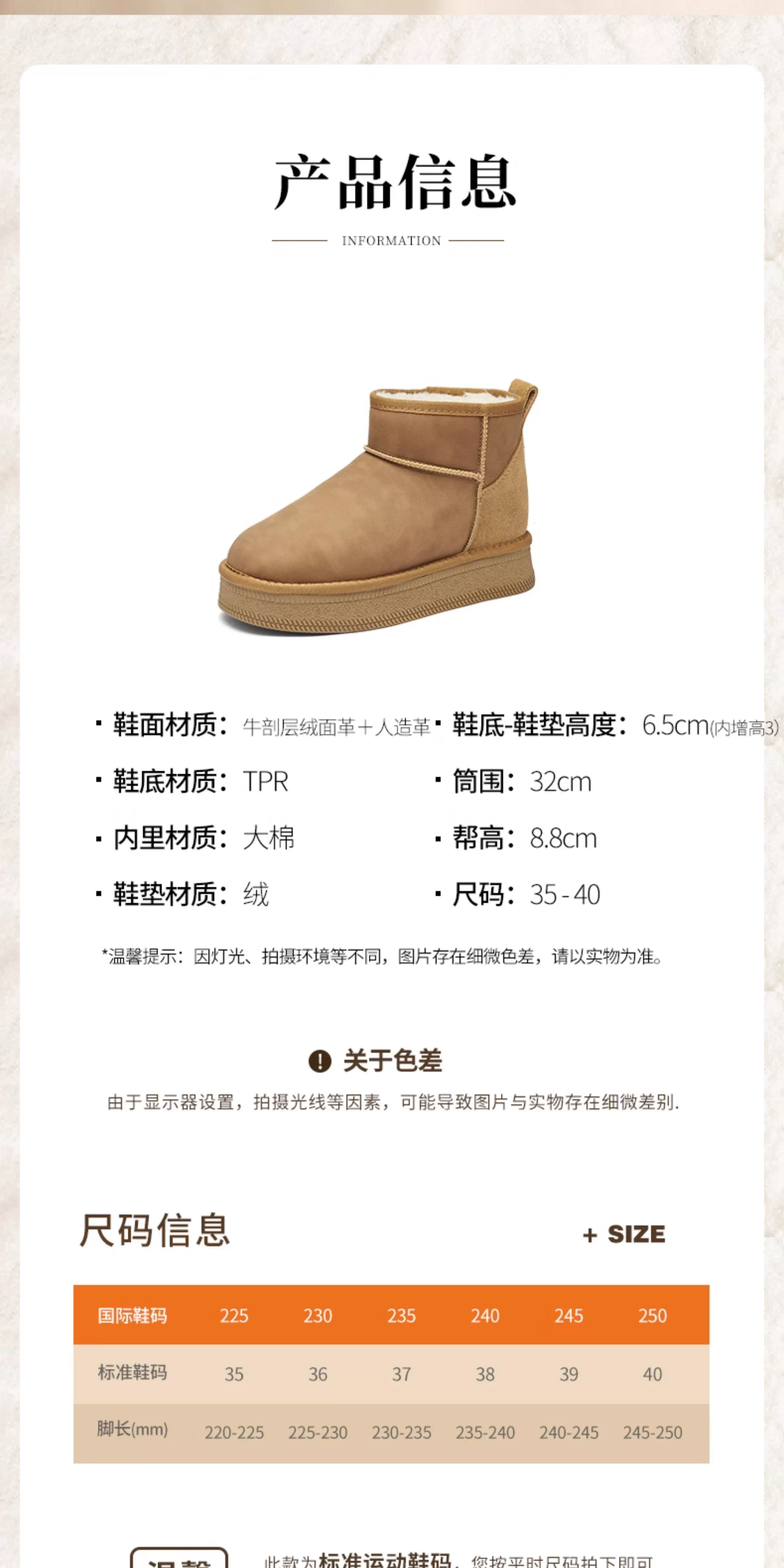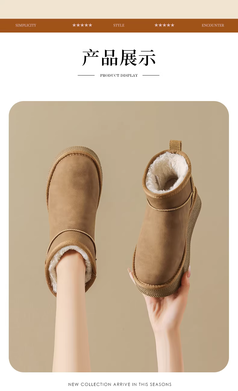 - Giày bốt tuyết màu nâu Daphne dành cho nữ có tăng chiều cao ẩn, kiểu dáng mùa đông mới 2025, lót lông cừu, bốt ngắn bằng da dày, giày cotton Đông Bắc.