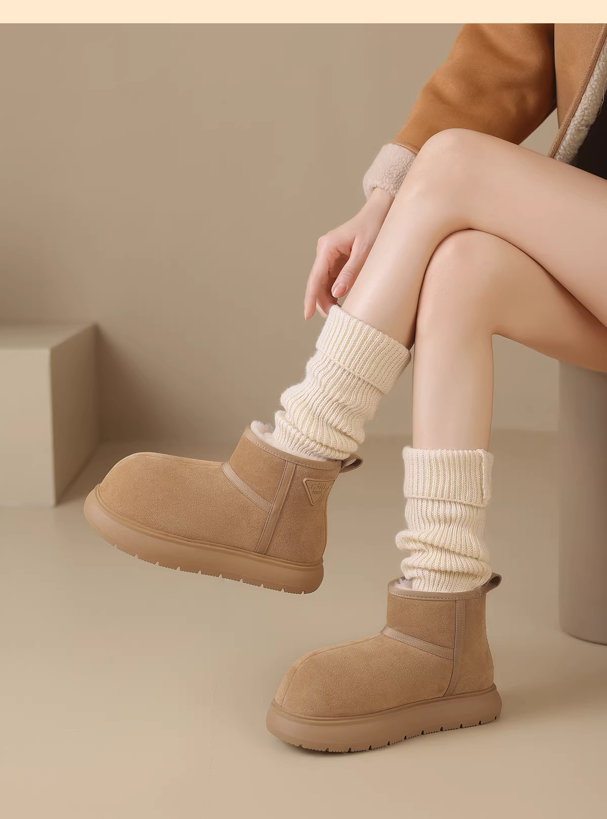 Giày bốt tuyết mũi rộng Daphne dành cho nữ 2025, giày bông đế dày mới, giày nữ lót lông mùa đông dễ thương và độc đáo dành cho mùa thu đông.