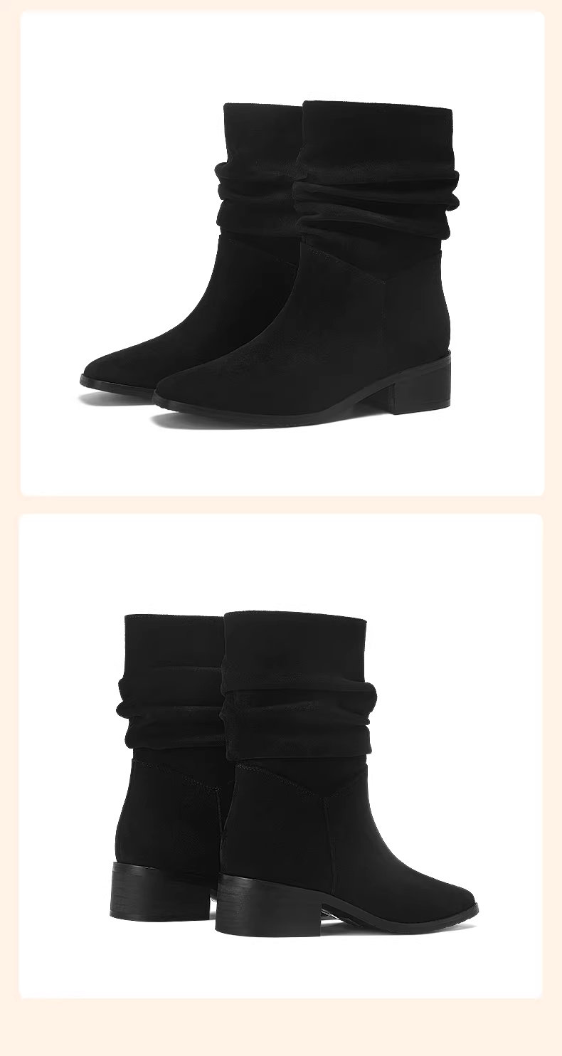 - Giày cao bồi phương Tây Daphne 2025 Thu/Đông Mới Giày bốt ngắn nữ đến giữa bắp chân Giày bốt cưỡi ngựa Giày bốt Martin Giày bốt dáng rộng