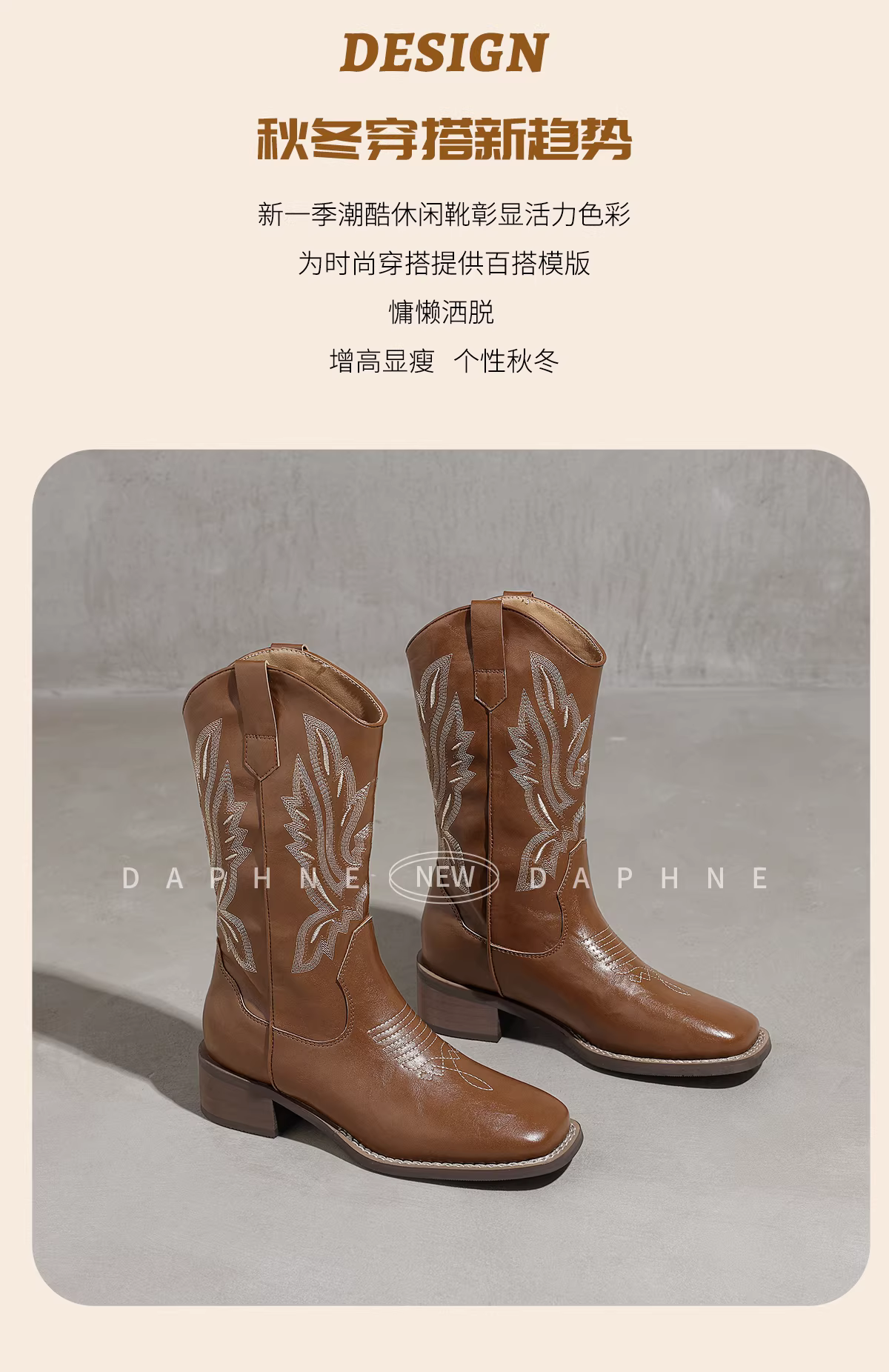- Giày cao bồi thêu Daphne dành cho nữ, kiểu mới 2025, phong cách du lịch, trang phục Melard, giày sa mạc, giày hiệp sĩ vùng Tây Bắc