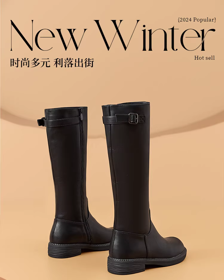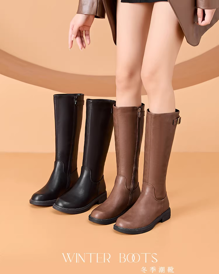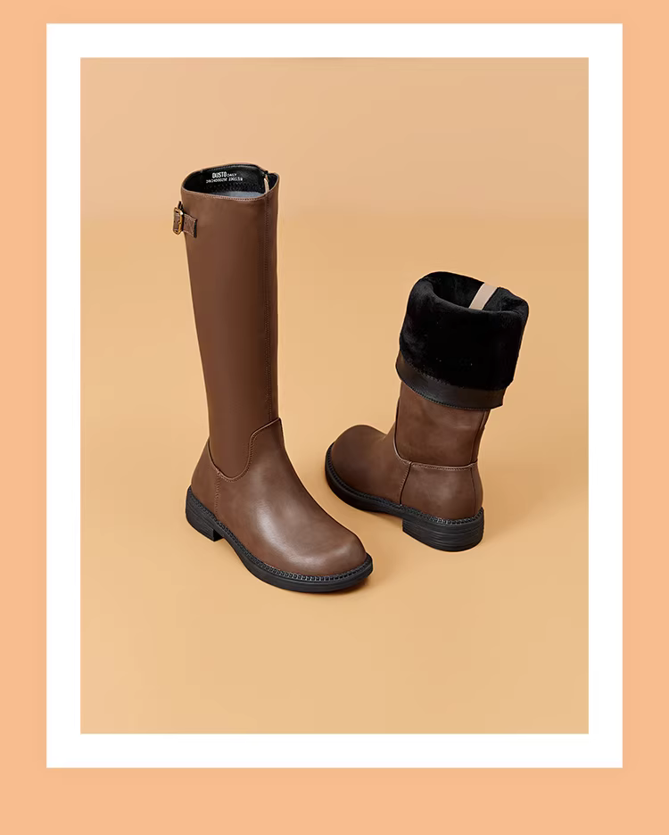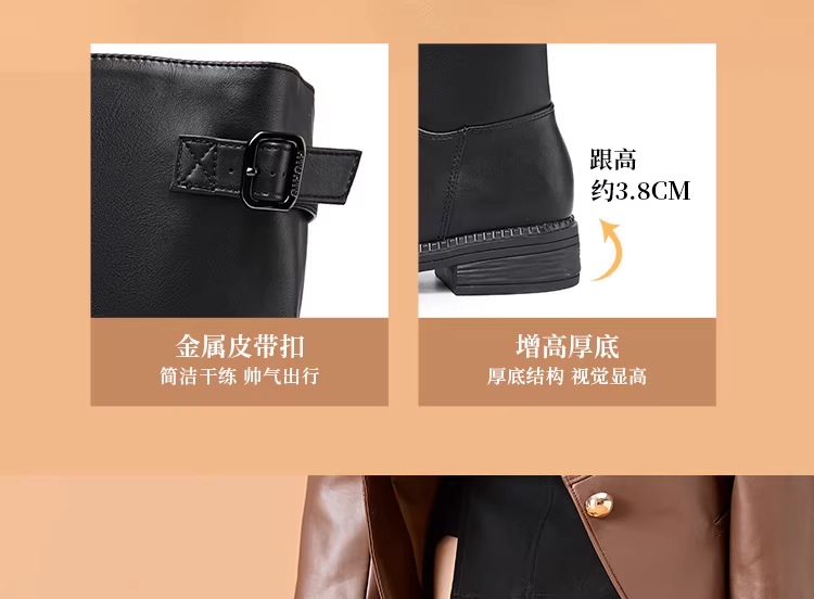 - Giày cao cổ Dadong dành cho nữ, mẫu mới thu đông 2025, lót lông cừu, đế dày, kiểu dáng cổ điển, dành cho người thấp nhỏ.