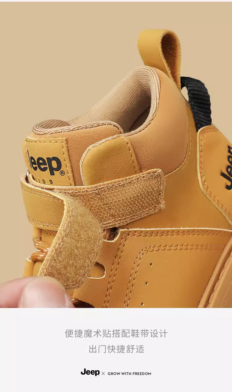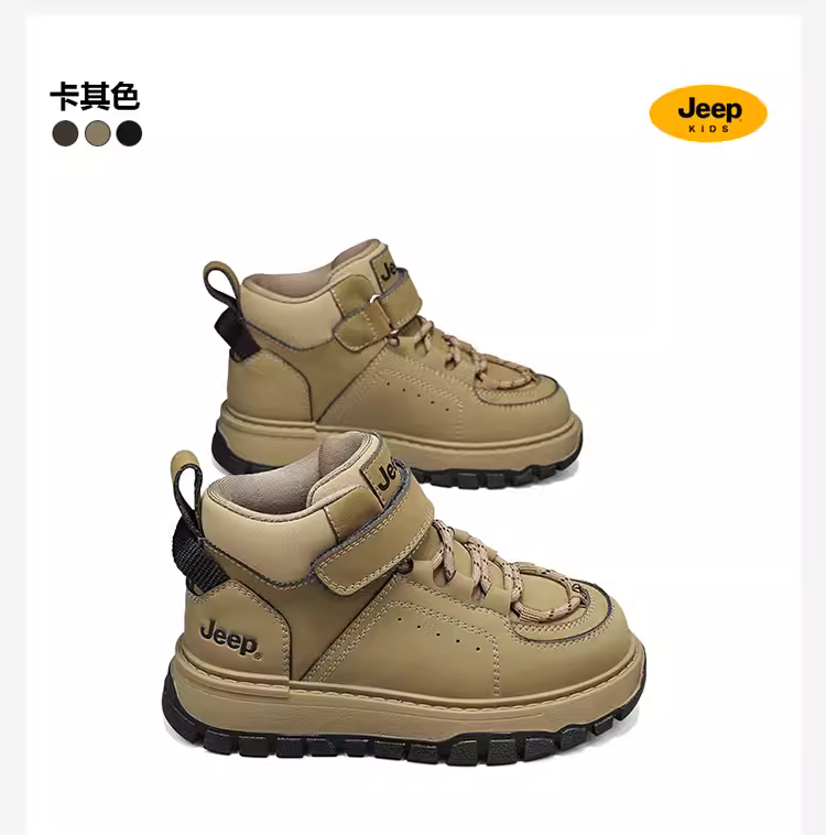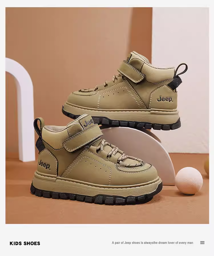 - Giày cao cổ lót lông màu nâu cho trẻ em Jeep mùa đông 2025 kiểu mới giày thể thao bé trai và bé gái giày cotton đôi bé gái