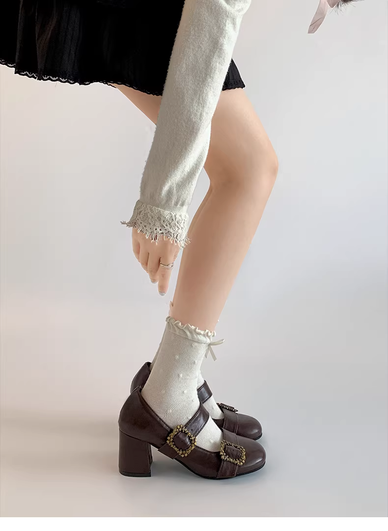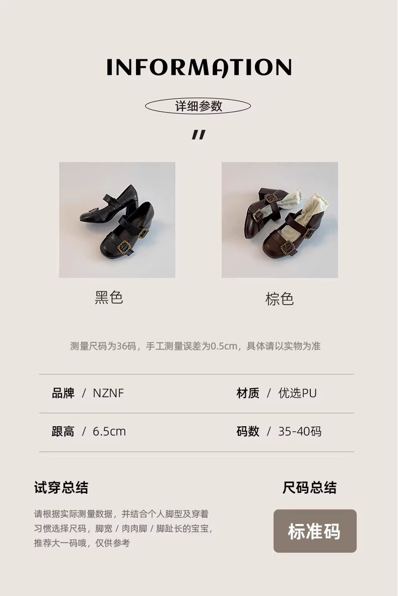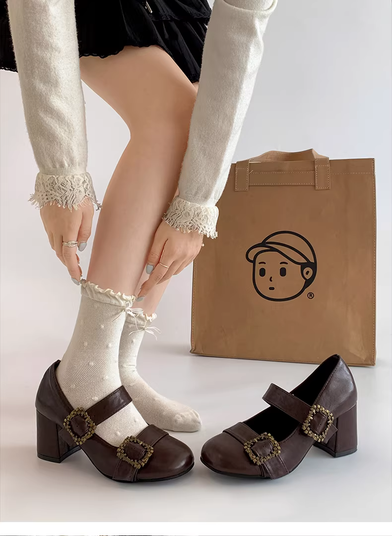 - Giày cao gót chunky cổ điển màu nâu dành cho nữ, kiểu thu đông 2025 mới, phối cùng chân váy, giày Mary Jane đế thấp.