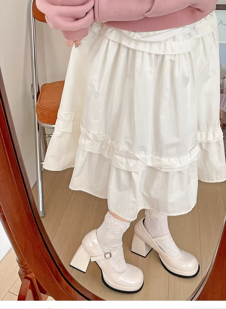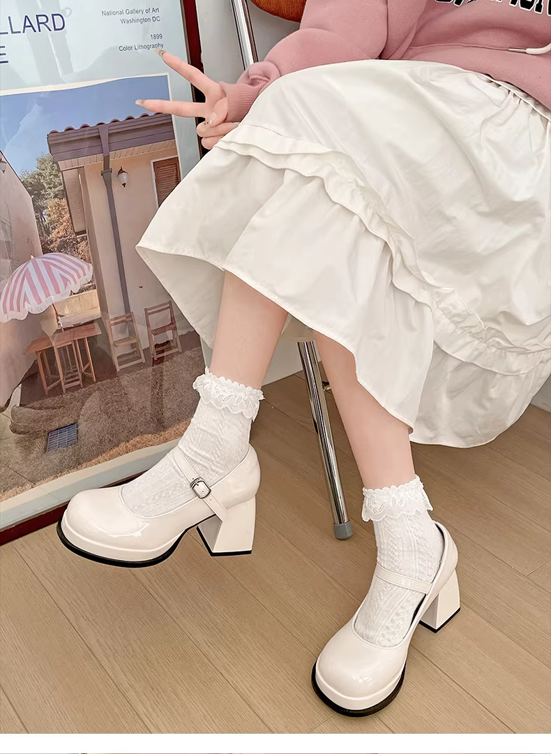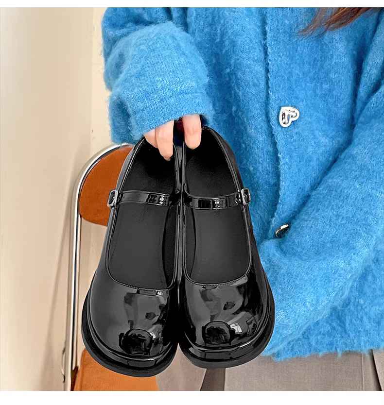 - Giày cao gót chunky kiểu Pháp cổ điển dành cho nữ, mẫu mới thu 2025, đa năng, kiểu Mary Jane, chất liệu da, đế thấp, phối được với chân váy