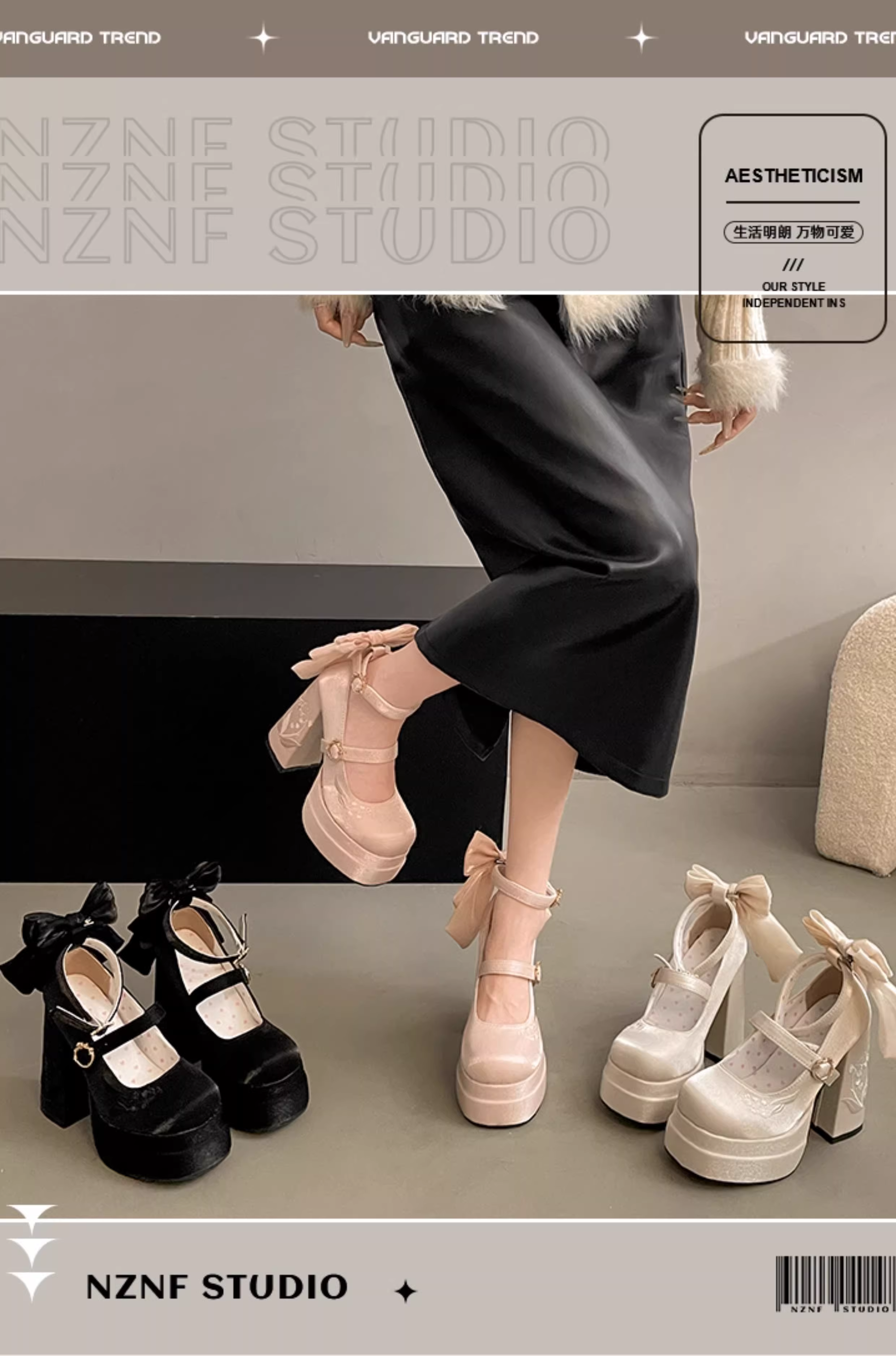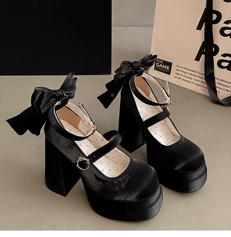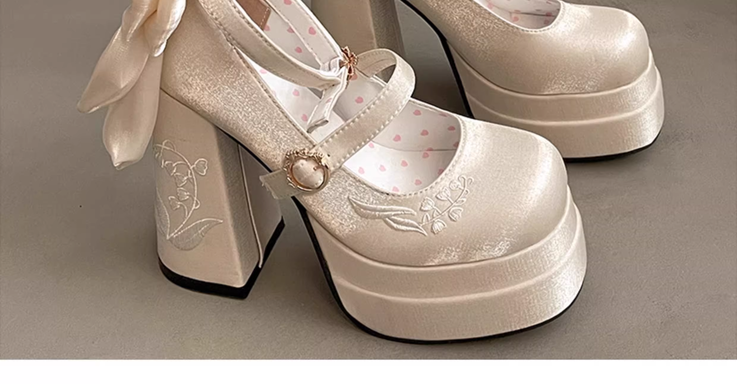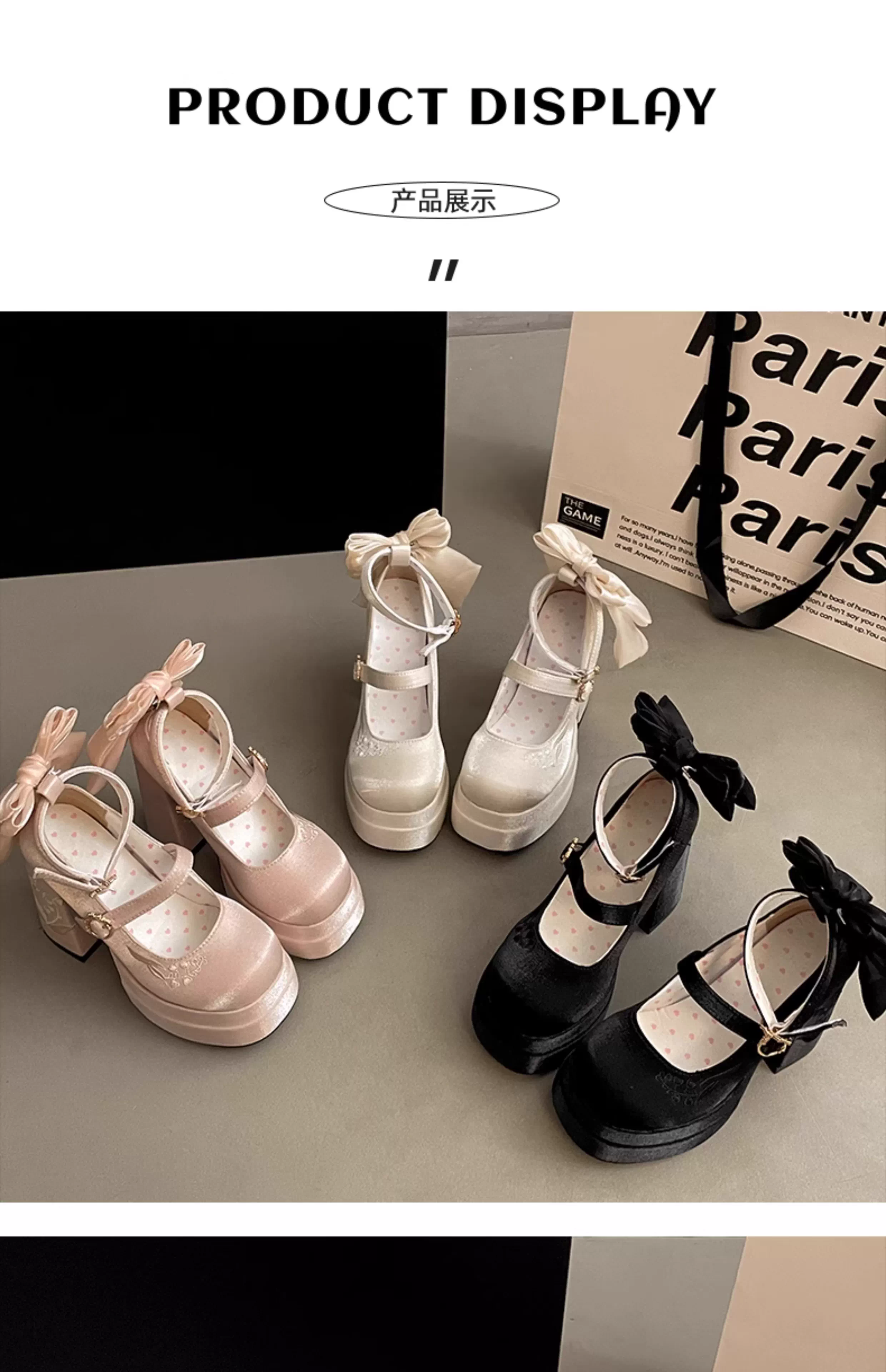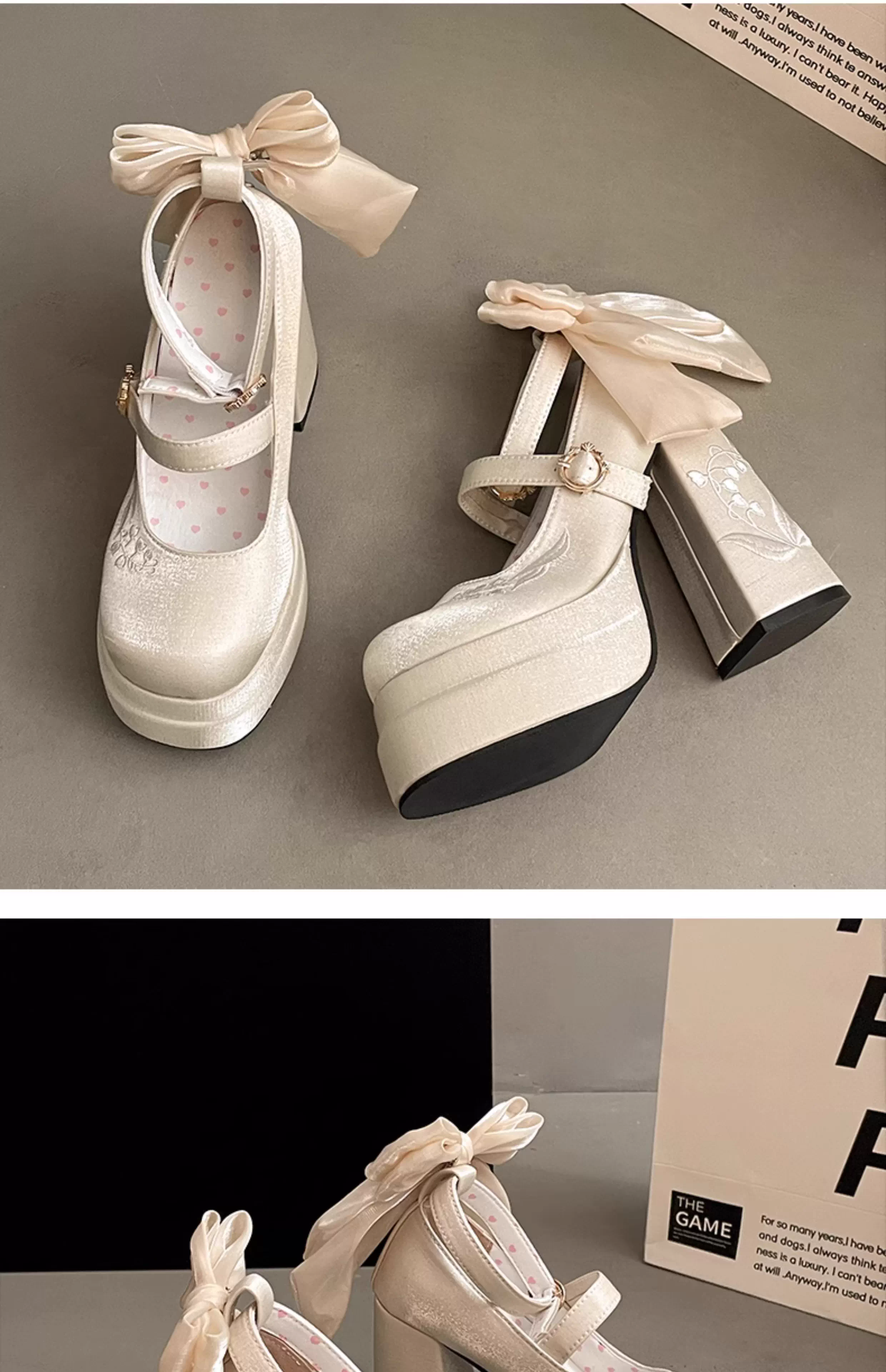 - Giày cao gót chunky kiểu Pháp màu trắng dành cho nữ, mẫu mới thu đông 2025, kiểu retro, nơ, kiểu Mary Jane, chất liệu da