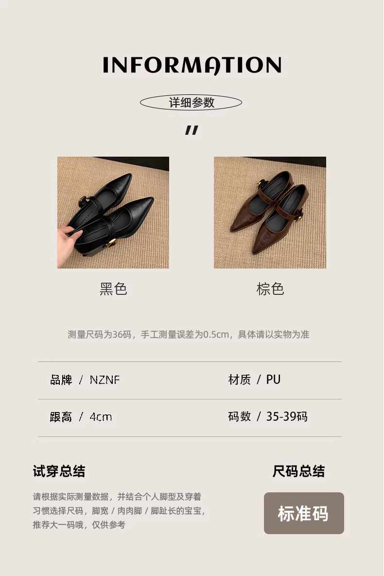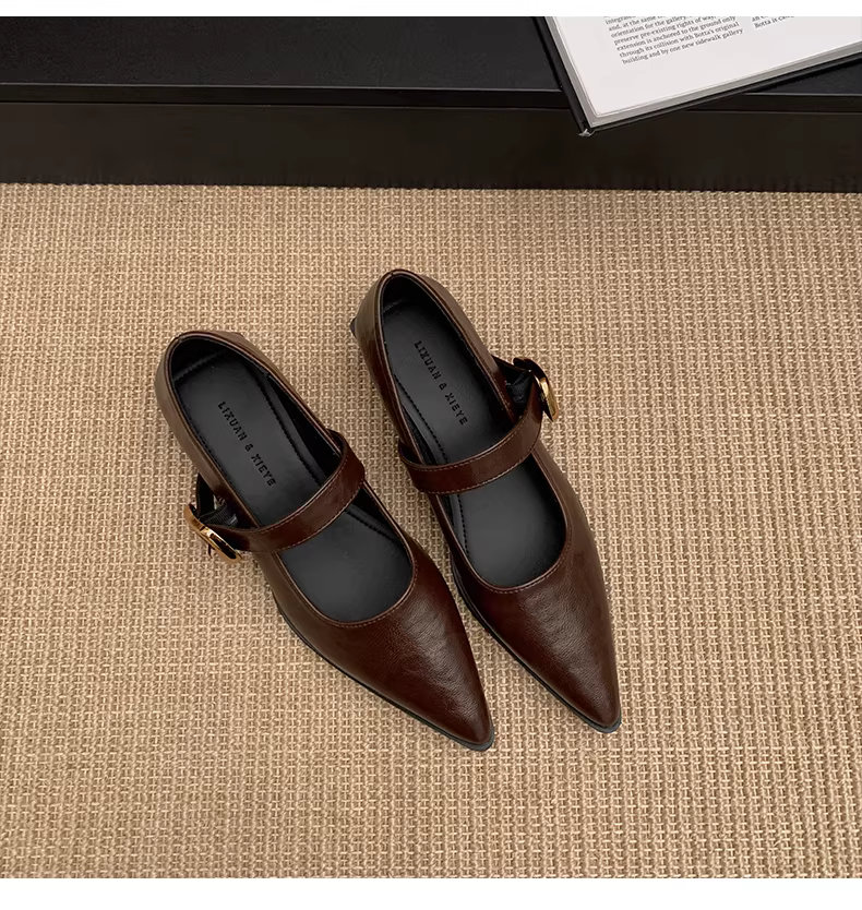 - Giày cao gót chunky mũi nhọn đế thấp dành cho nữ, mẫu mới thu đông 2025, kiểu Mary Jane đa năng phong cách Pháp.