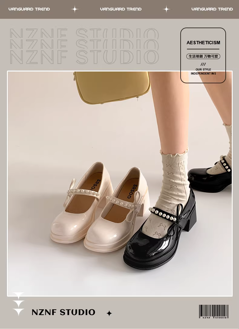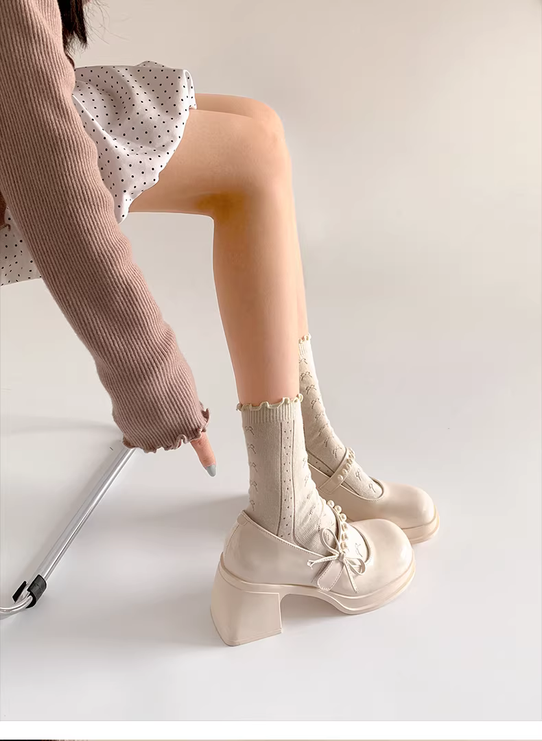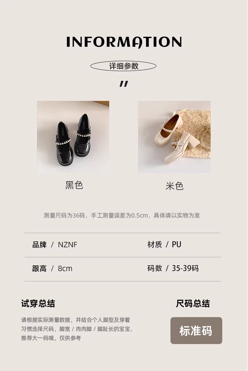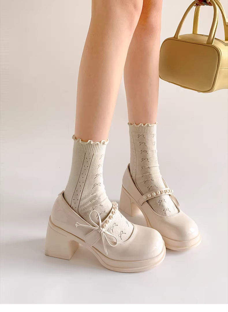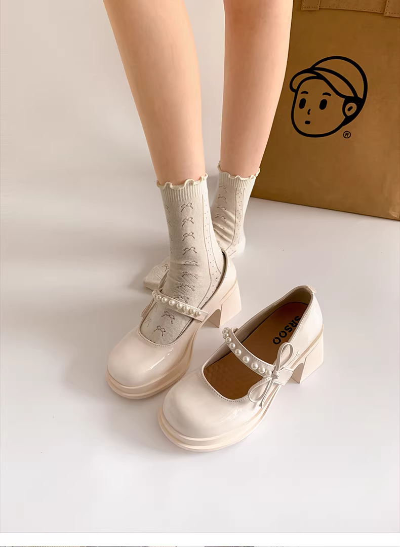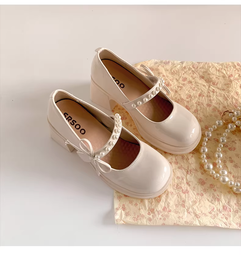 - Giày cao gót da chunky retro thời thượng màu trắng dành cho nữ, giày Mary Jane tăng chiều cao kiểu JK mới mùa thu 2025.