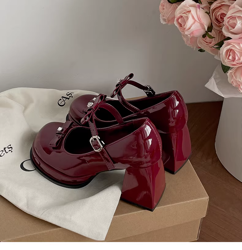 Giày cao gót da đỏ kiểu Anh cổ điển cao cấp dành cho nữ, kiểu dáng thu đông 2025 mới, phối chân váy và giày Mary Jane đa năng