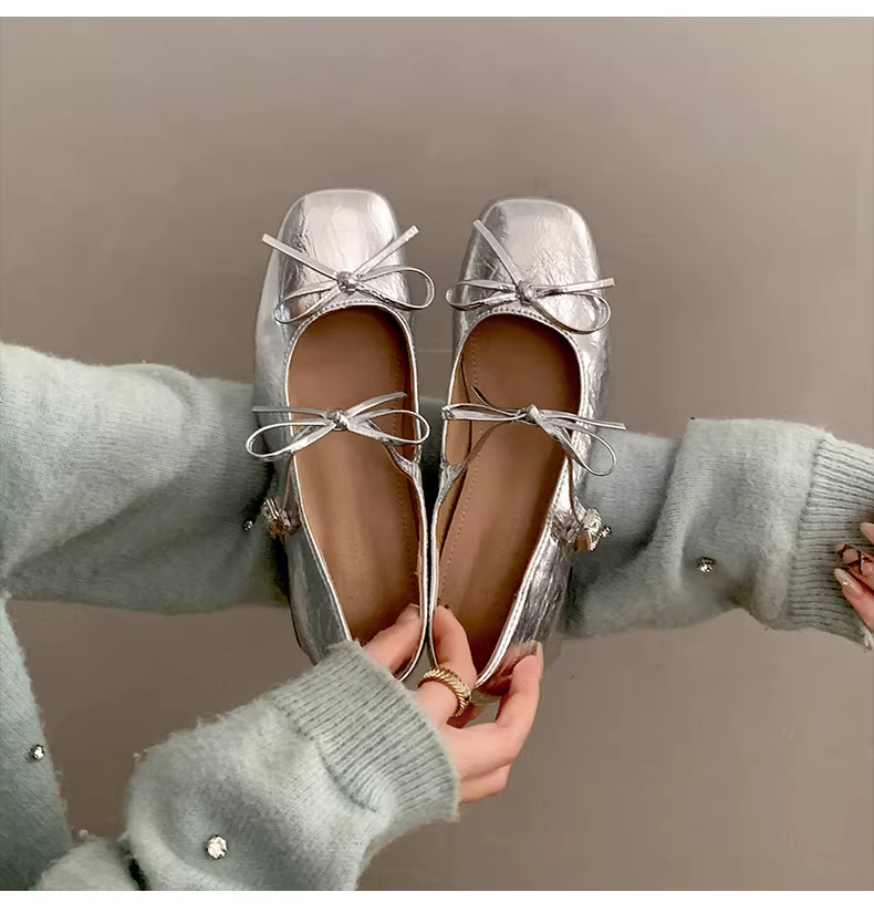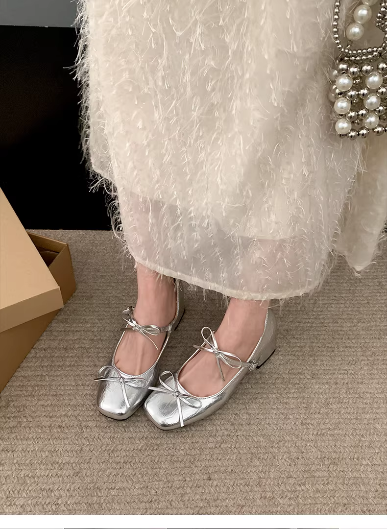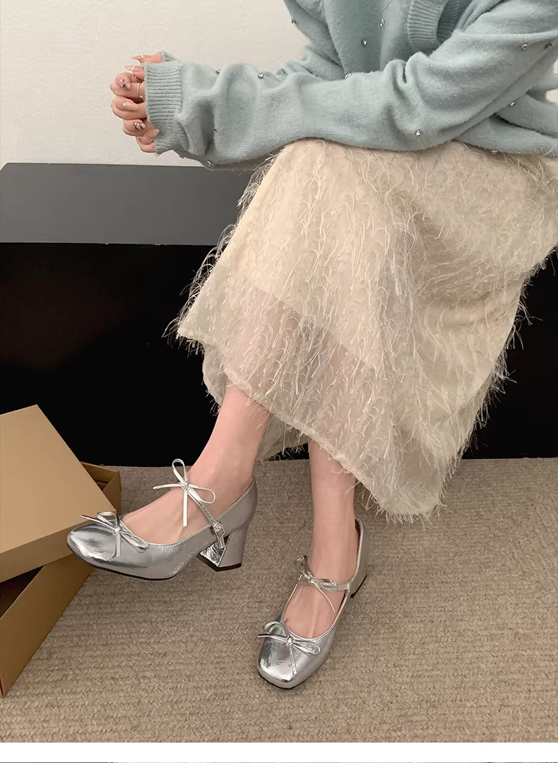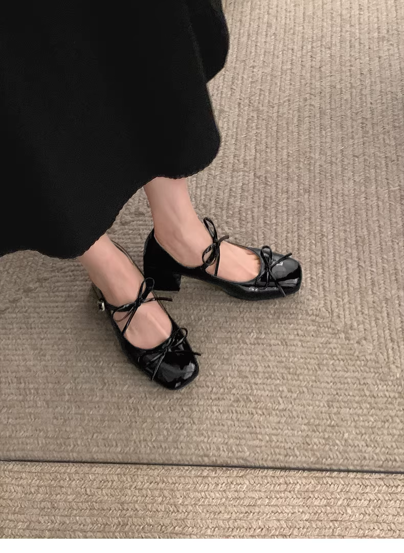 - Giày cao gót da kiểu Pháp cổ điển dành cho nữ, phong cách thu đông 2025 mới, giày Mary Jane tăng chiều cao có nơ.