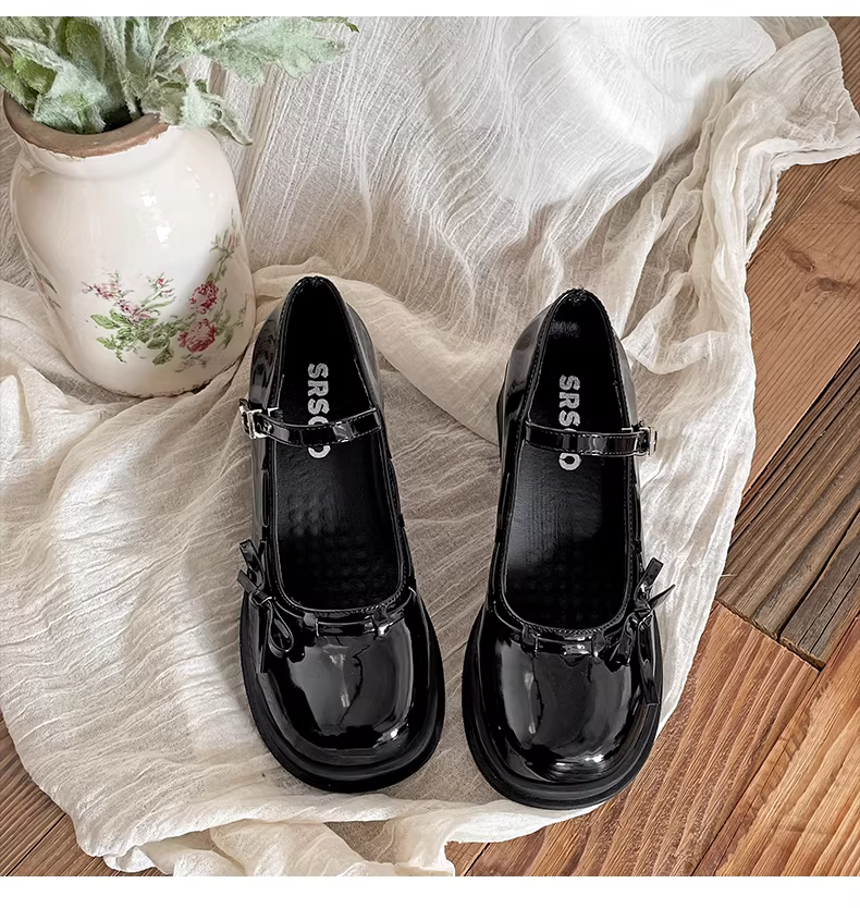 - Giày cao gót da kiểu Pháp đen, kiểu Mary Jane, phối chân váy, mùa thu 2025, phong cách cổ điển dành cho nữ