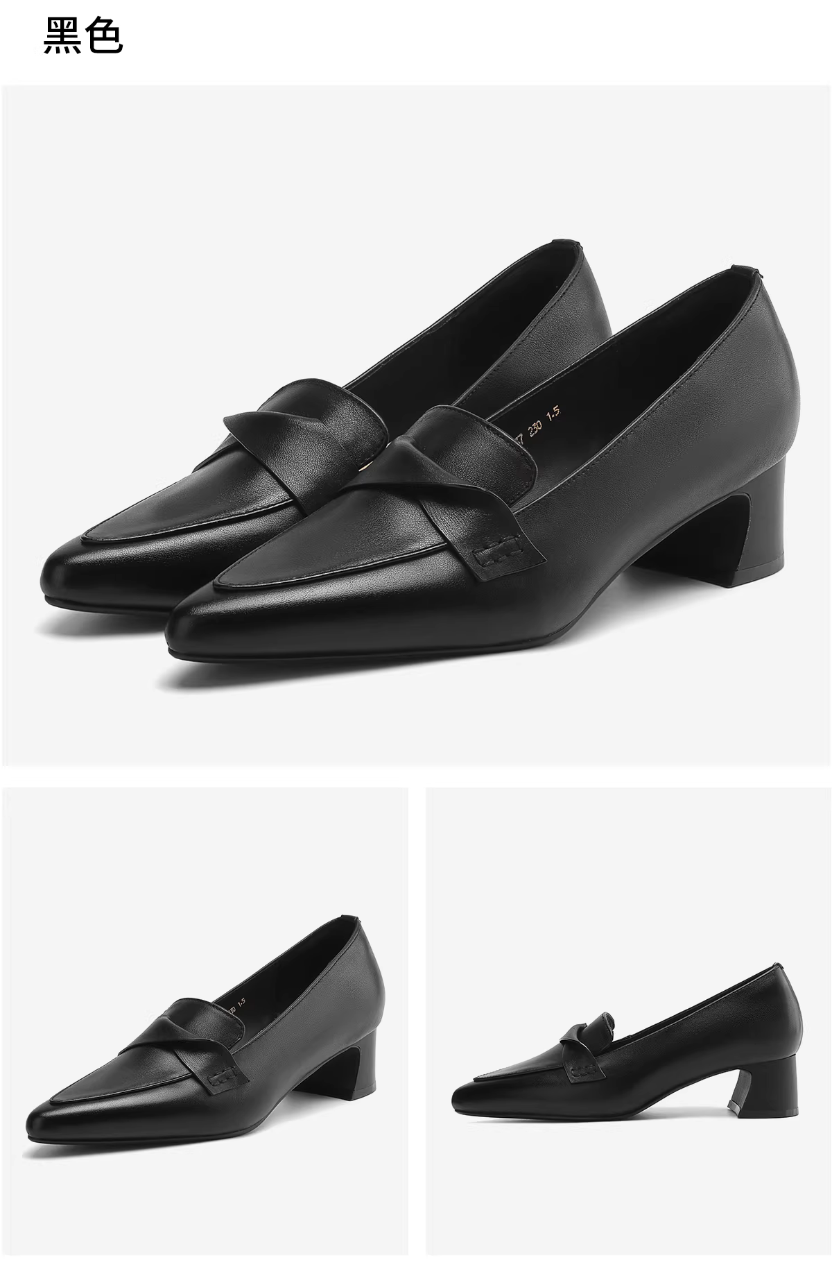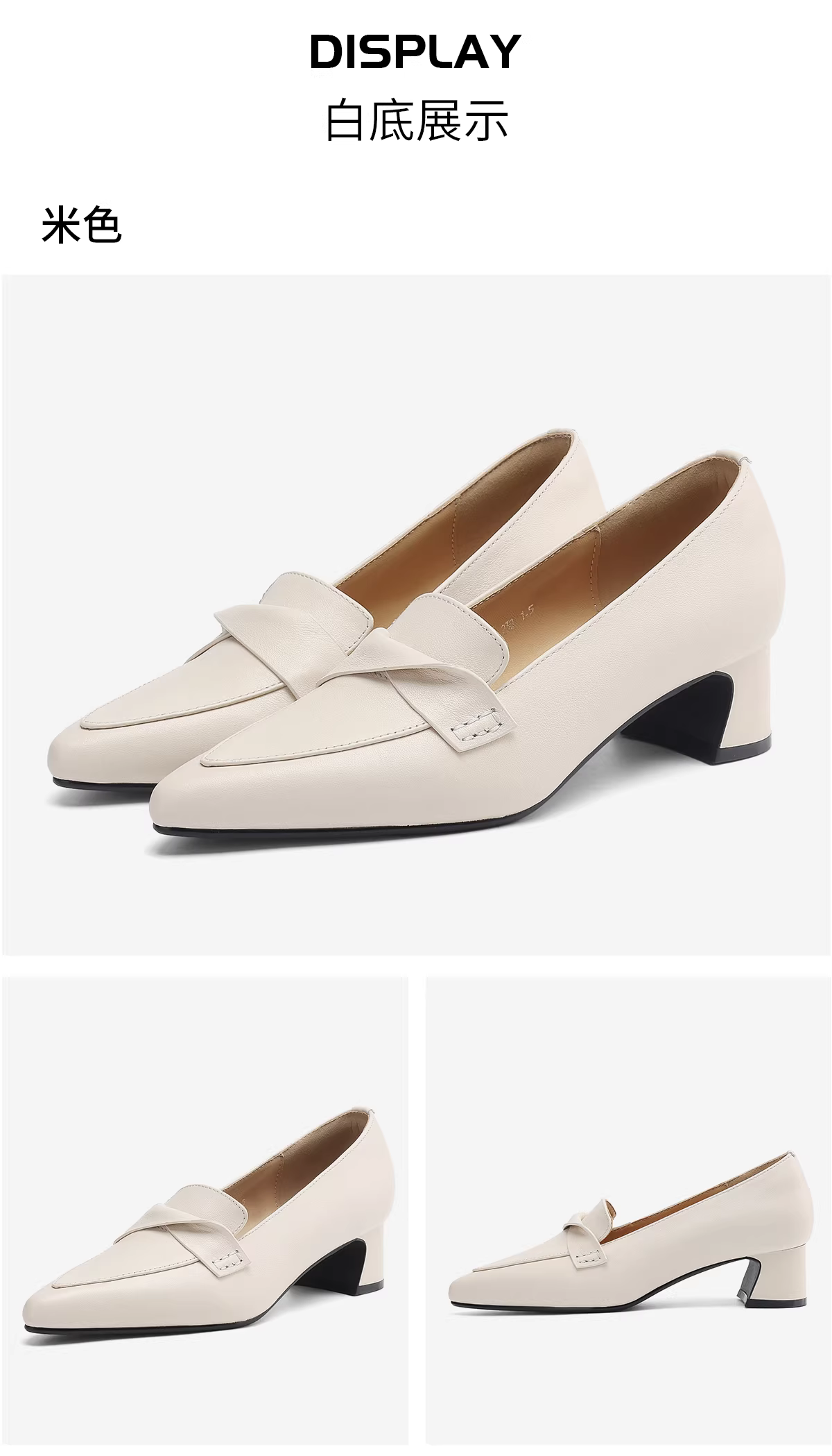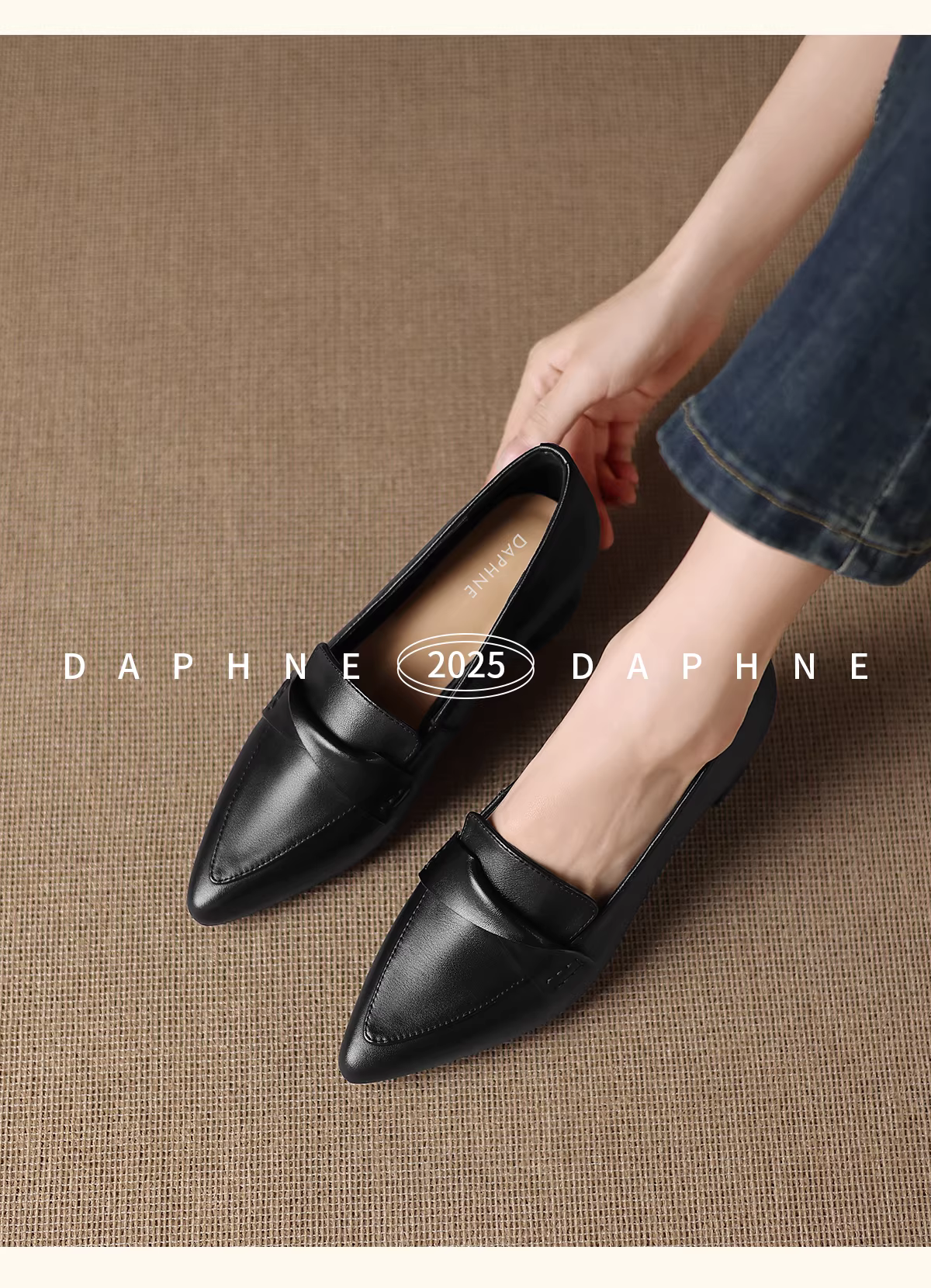 - Giày cao gót Daphne dành cho nữ 2025 kiểu thu mới phong cách Pháp, chất liệu da bò, mũi nhọn, gót dày, kiểu lười.