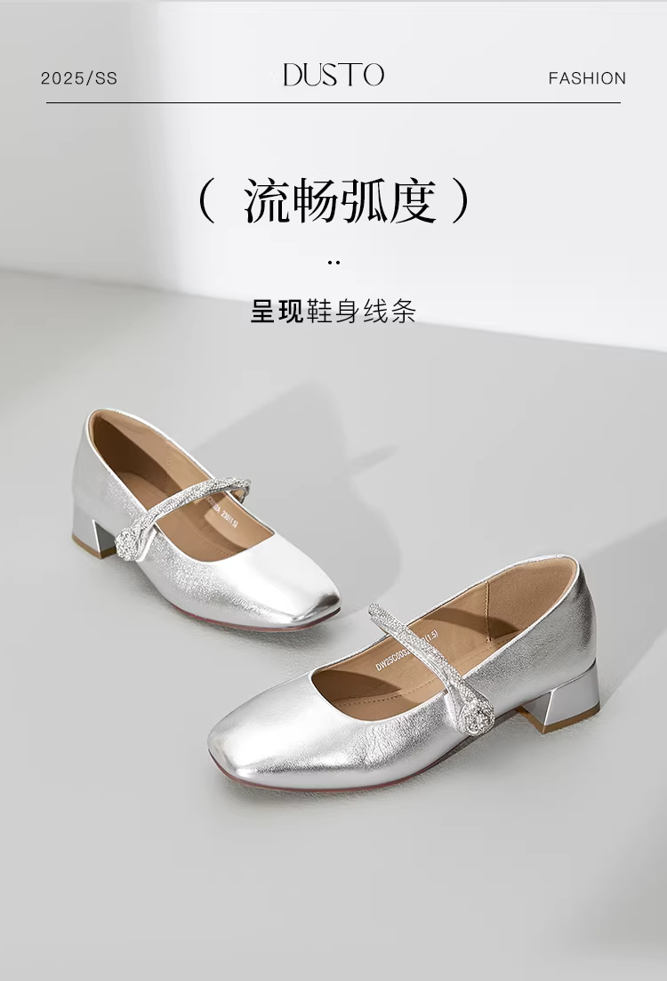 - Giày cao gót đế thô bạc Dadong dành cho nữ, kiểu dáng thu mới 2025, phối cùng chân váy, giày Mary Jane kiểu Pháp sang trọng.