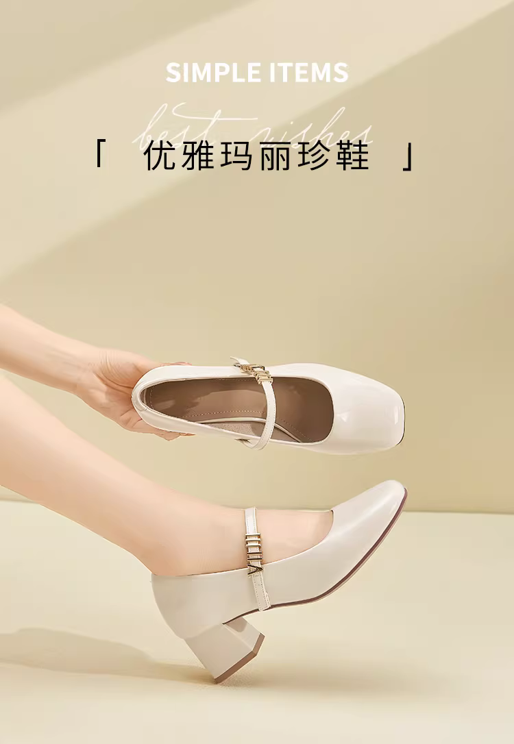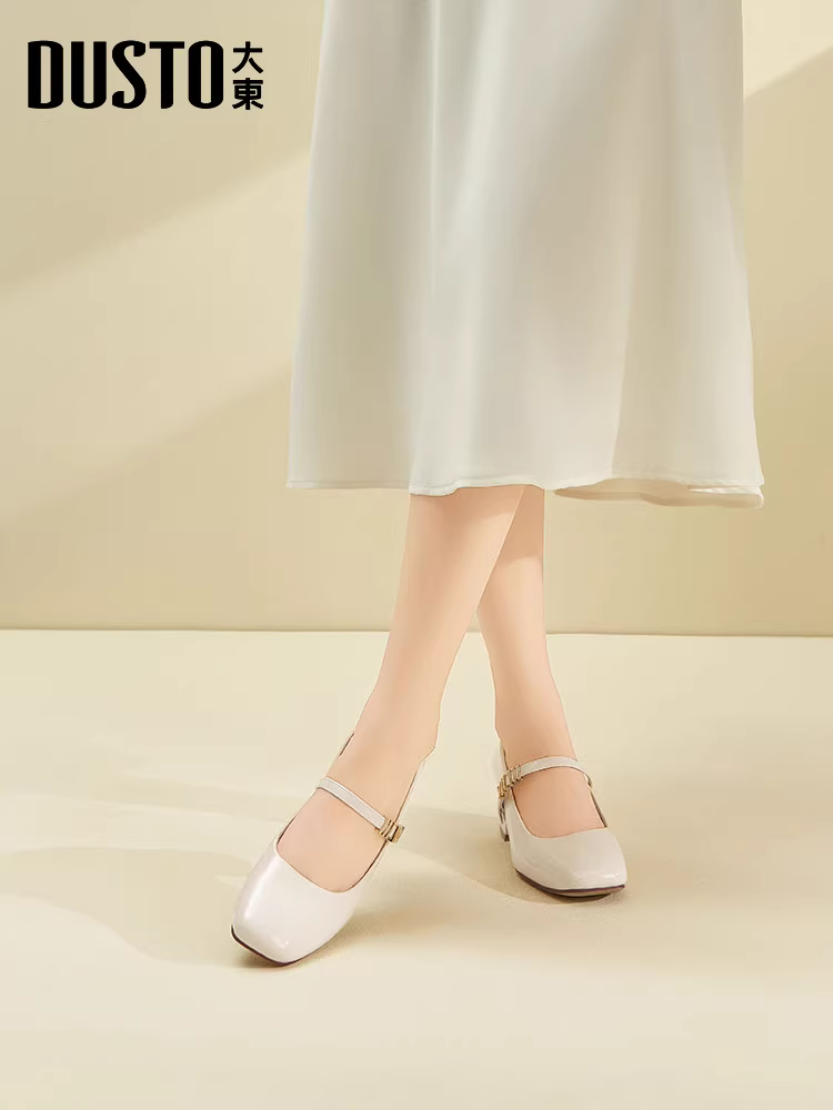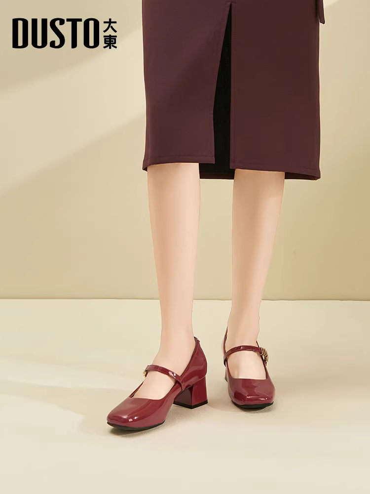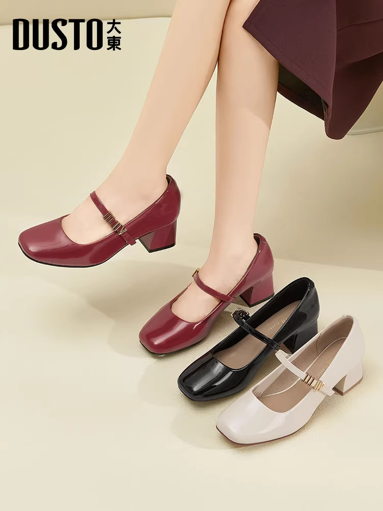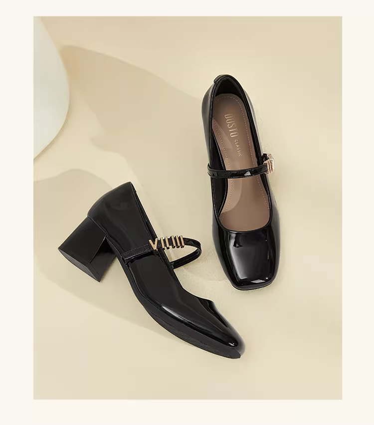 - Giày cao gót đế thô Dadong màu đen dành cho nữ, kiểu Pháp mùa thu mới 2025, kiểu Mary Jane, mũi vuông, giày đơn giản.