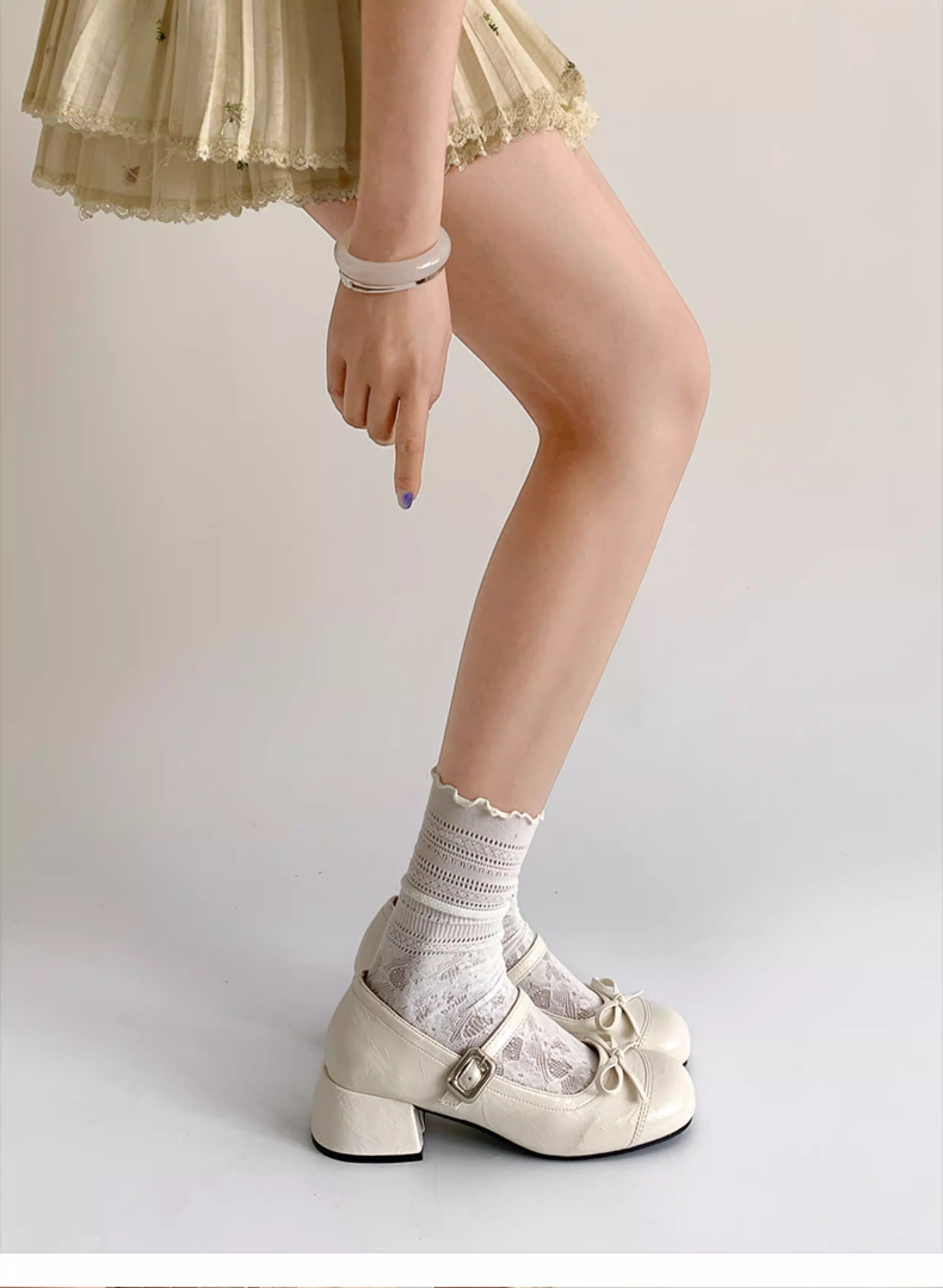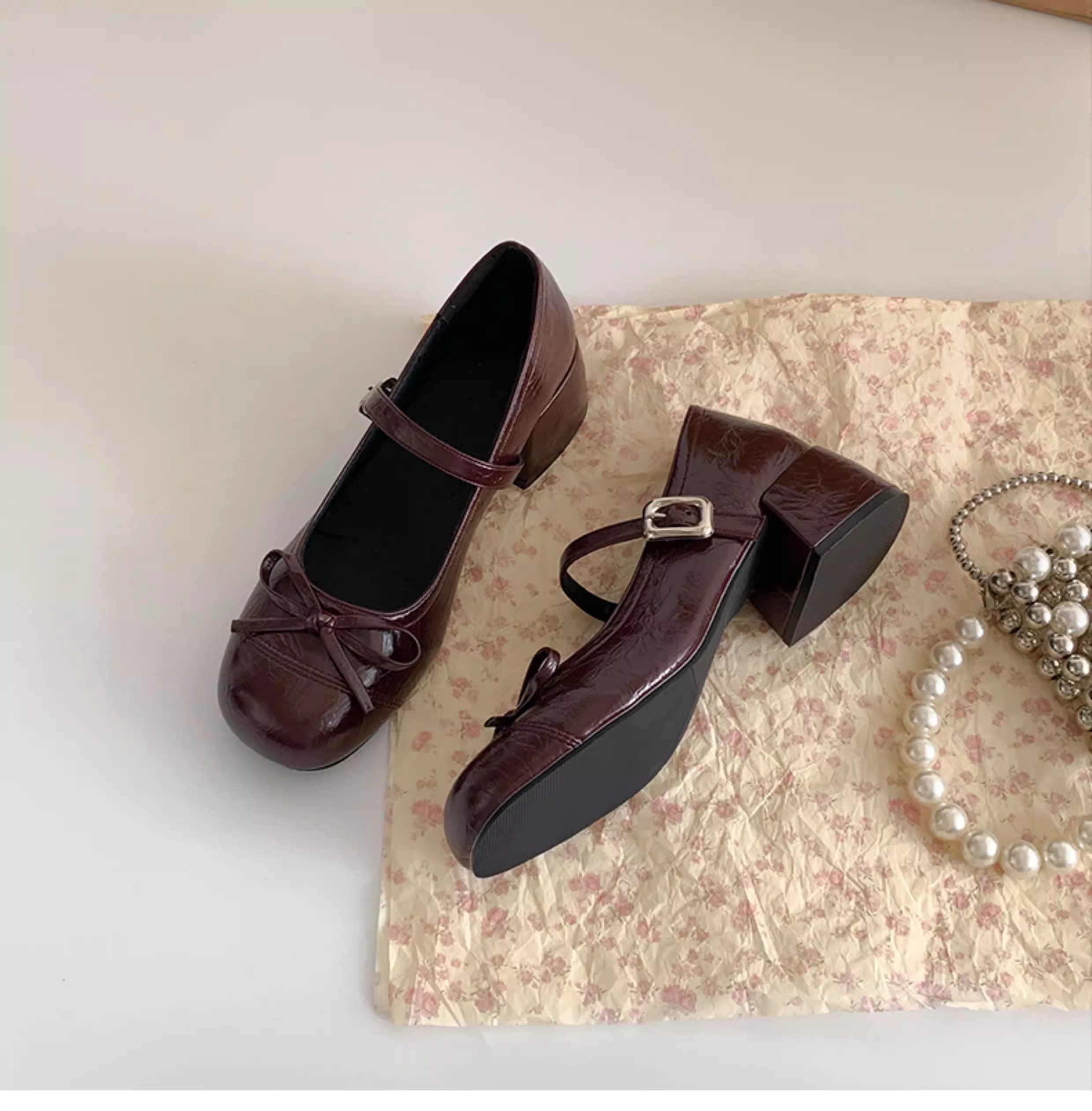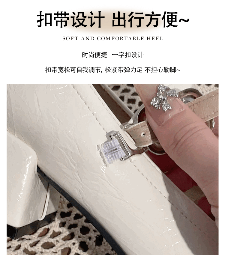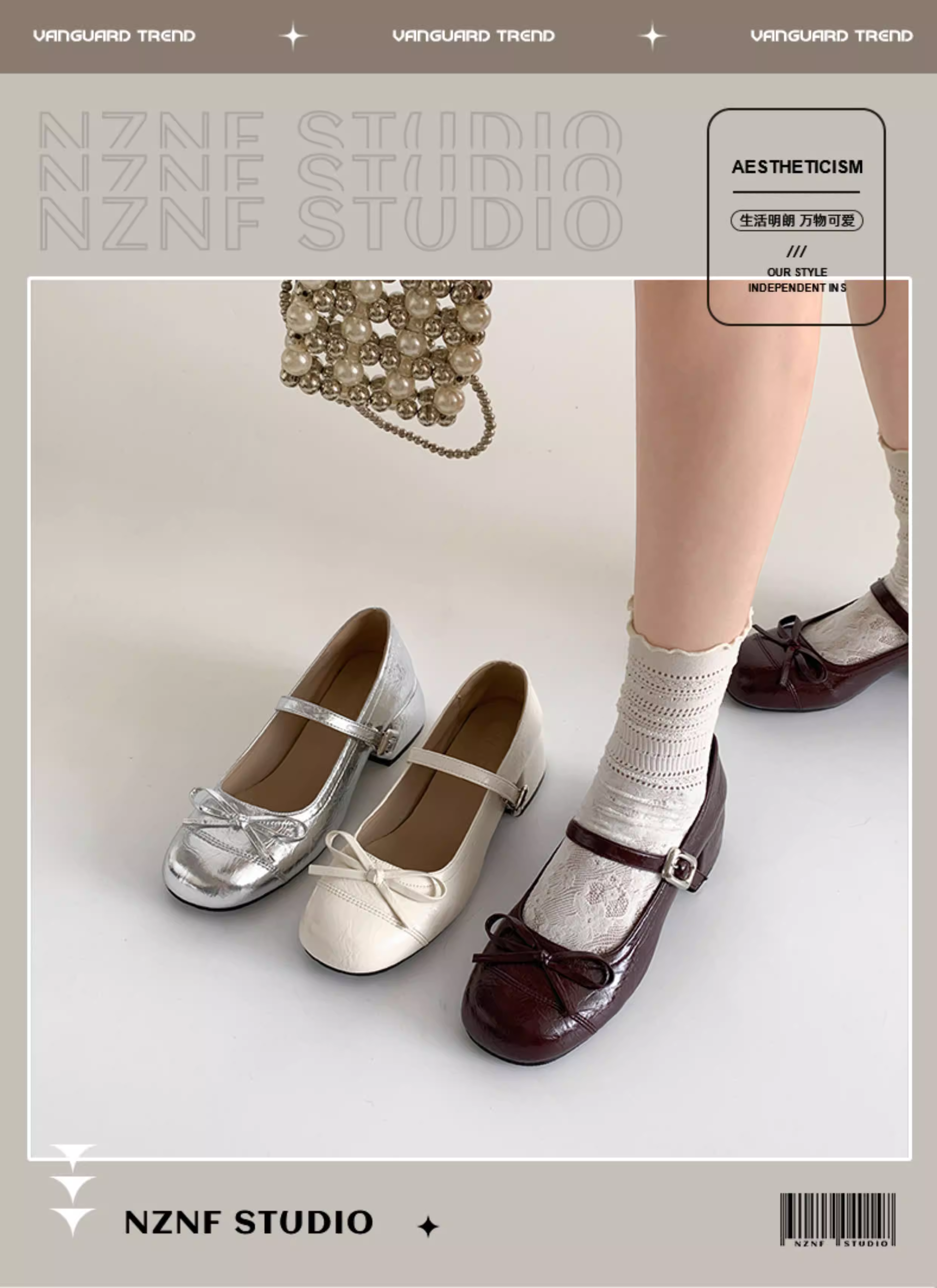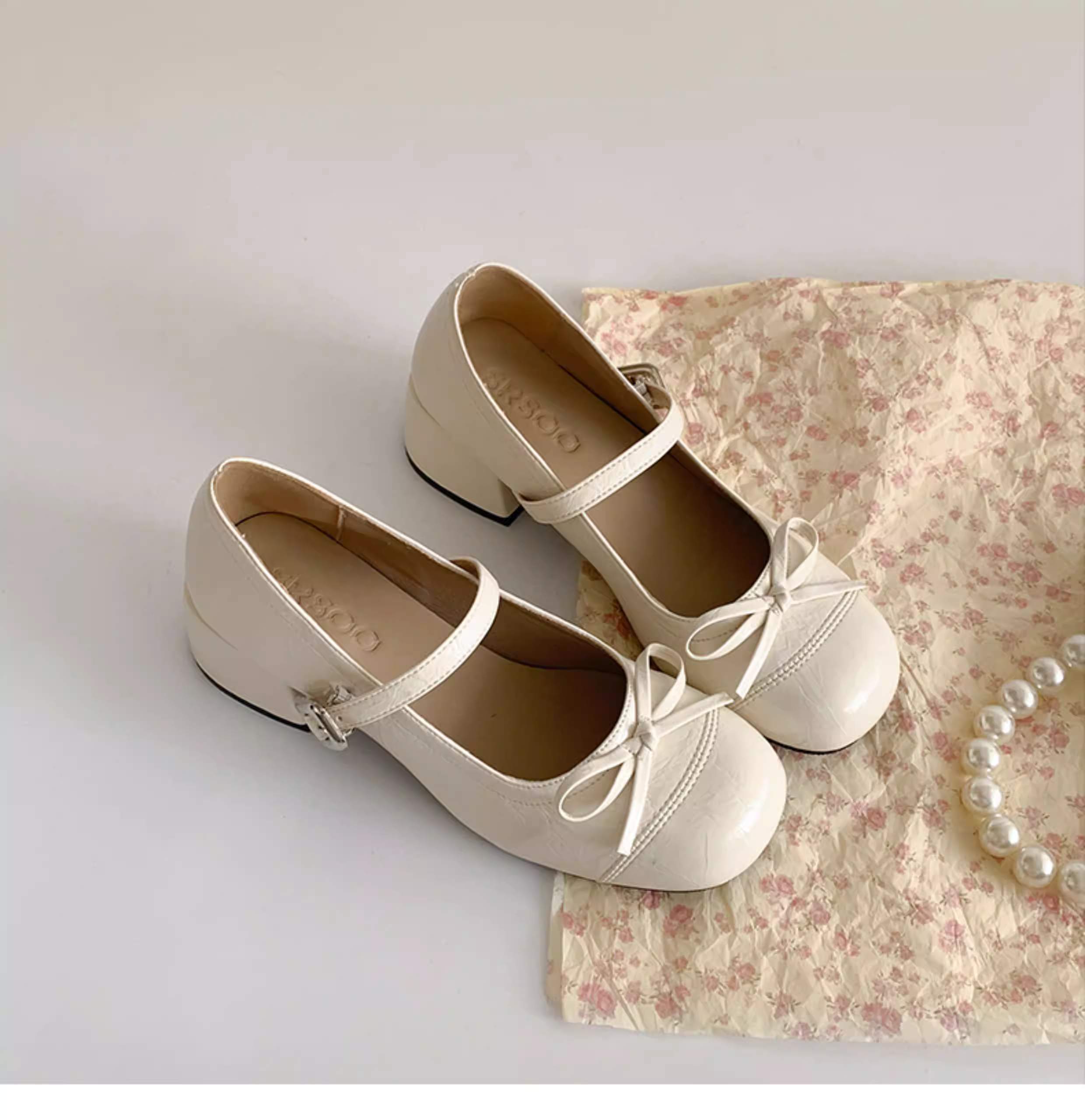 Giày cao gót đế thô kiểu Pháp cổ điển Nanzai màu trắng, miệng nông, dành cho nữ, mùa thu 2025, kiểu Mary Jane.