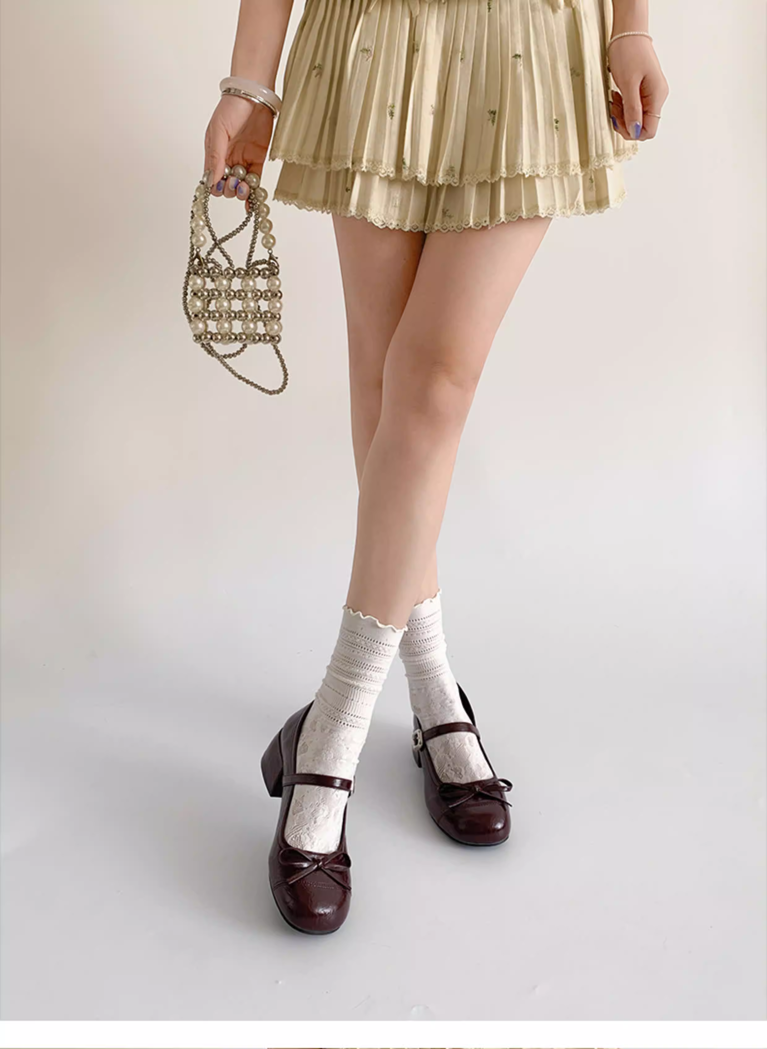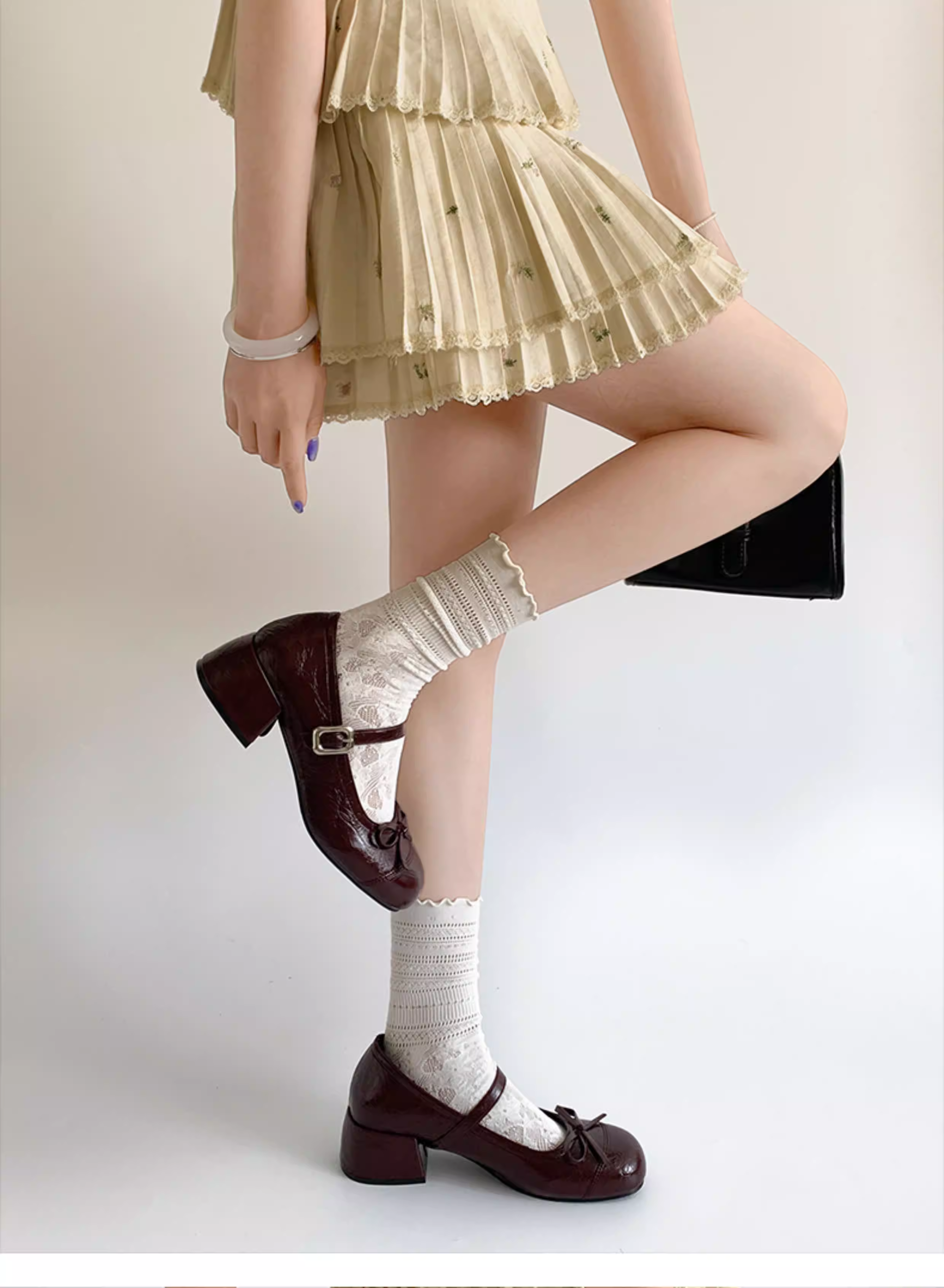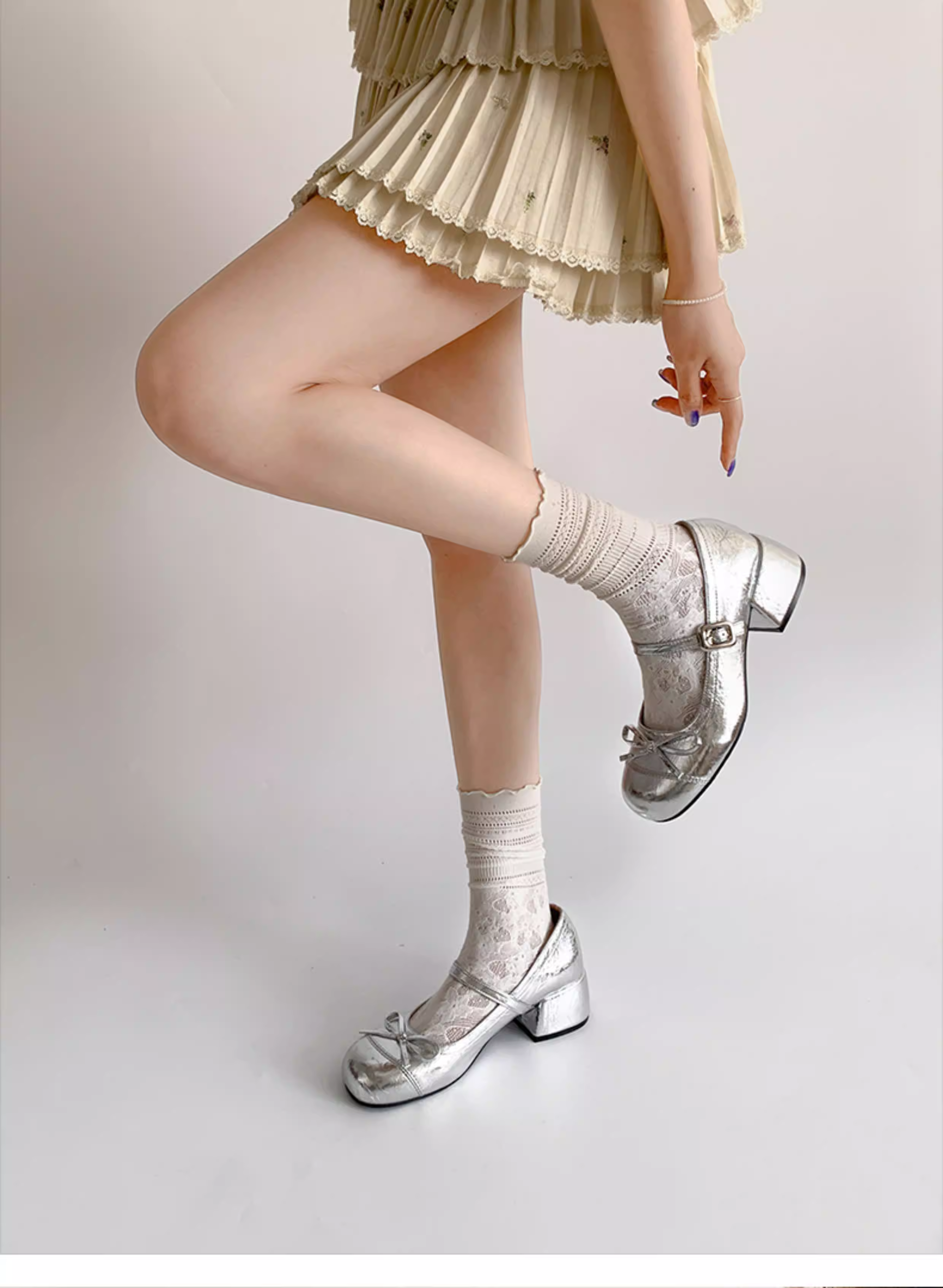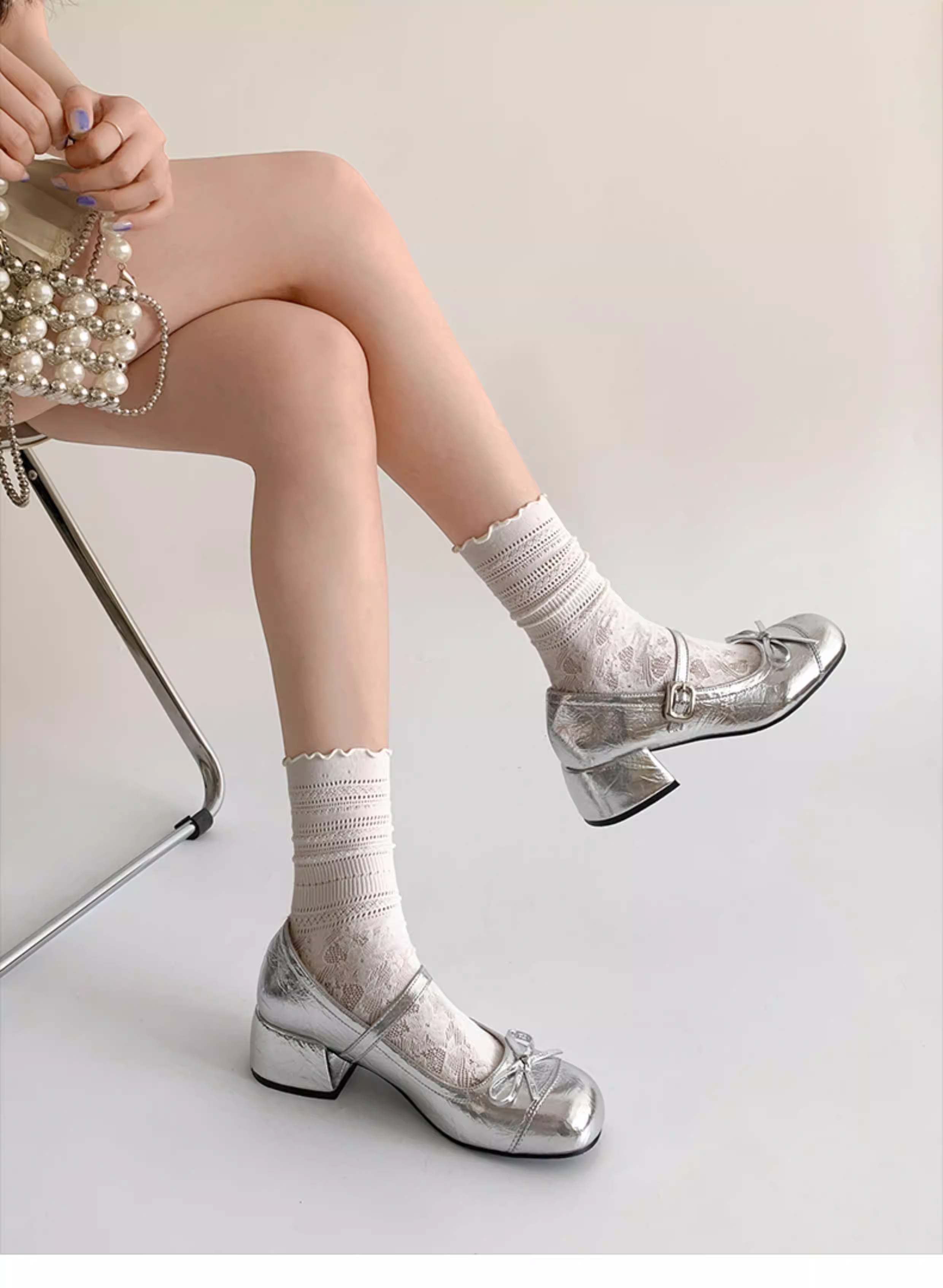 Giày cao gót đế thô kiểu Pháp cổ điển Nanzai màu trắng, miệng nông, dành cho nữ, mùa thu 2025, kiểu Mary Jane.