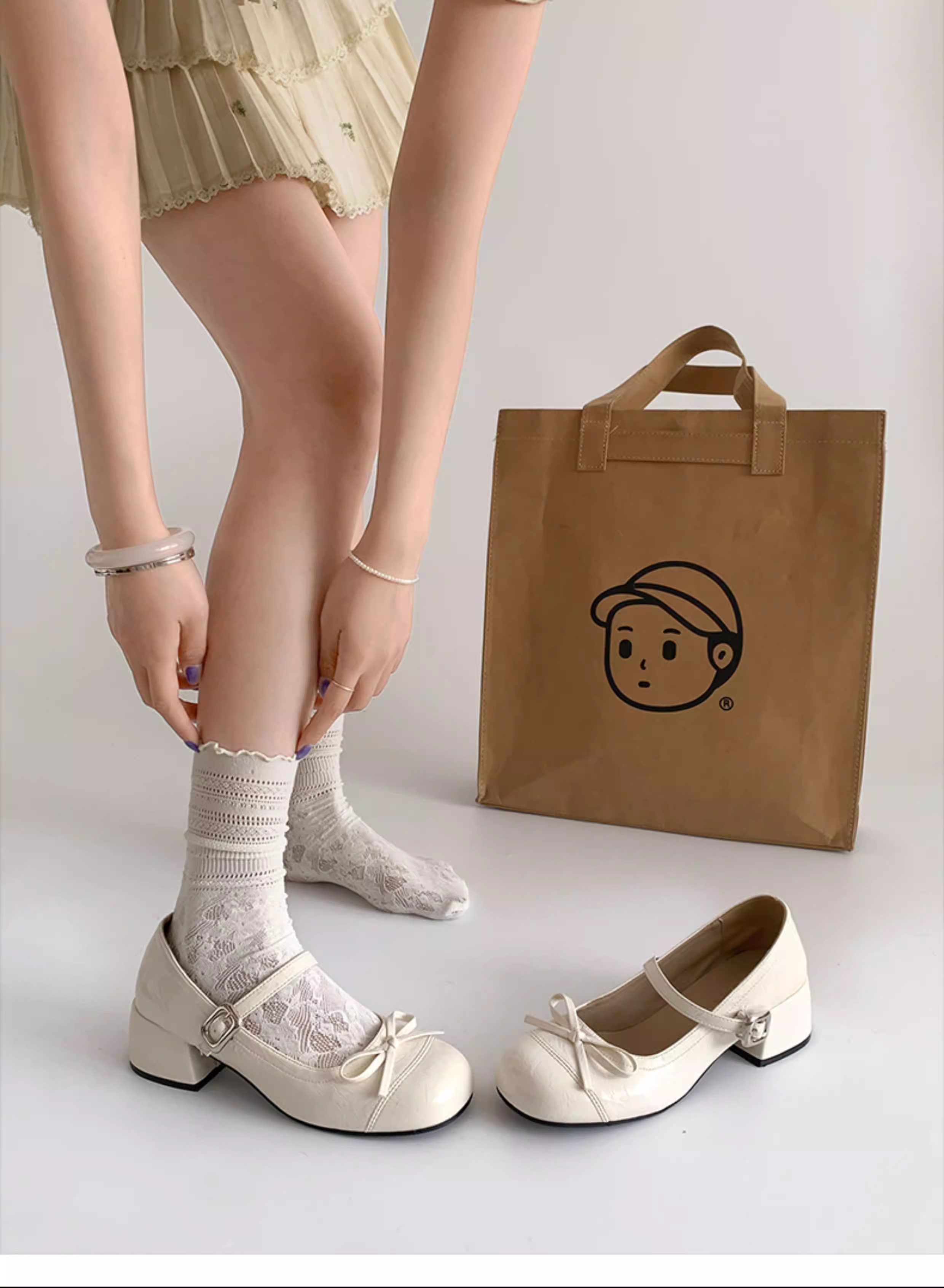 - Giày cao gót đế thô kiểu Pháp cổ điển Nanzai màu trắng, miệng nông, dành cho nữ, mùa thu 2025, kiểu Mary Jane.