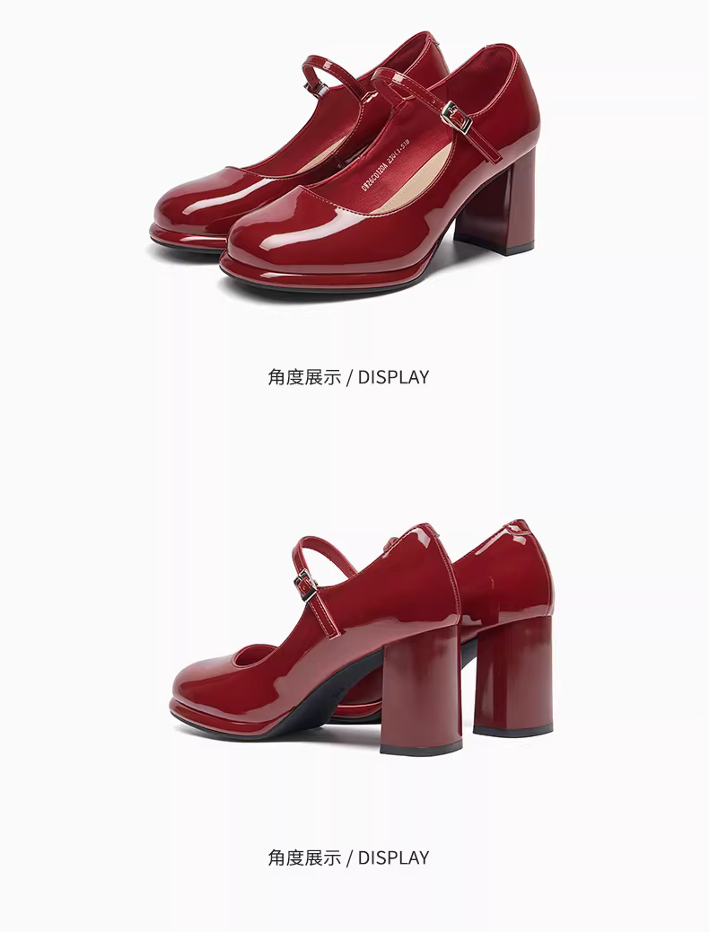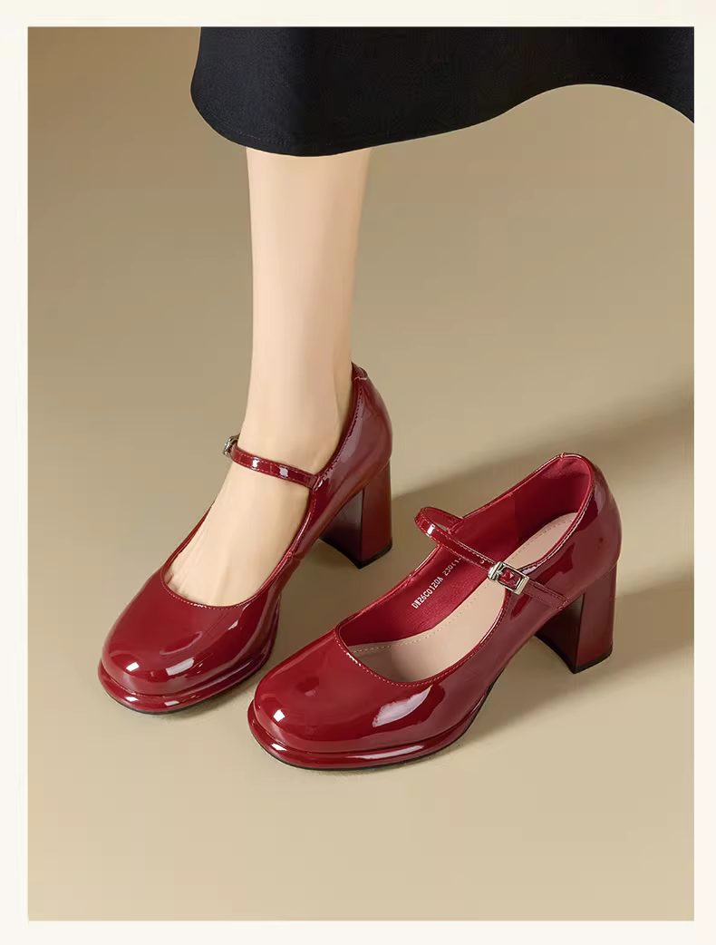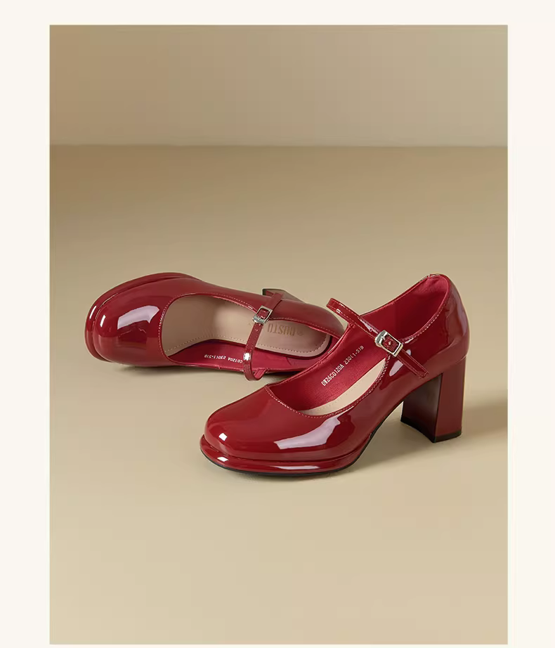 - Giày cao gót đế thô màu đỏ Dadong dành cho nữ, mẫu mới thu 2025, giày cưới, giày cô dâu, giày da nhỏ, giày Mary Jane