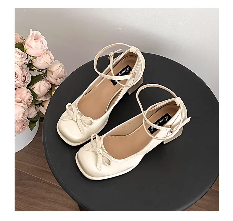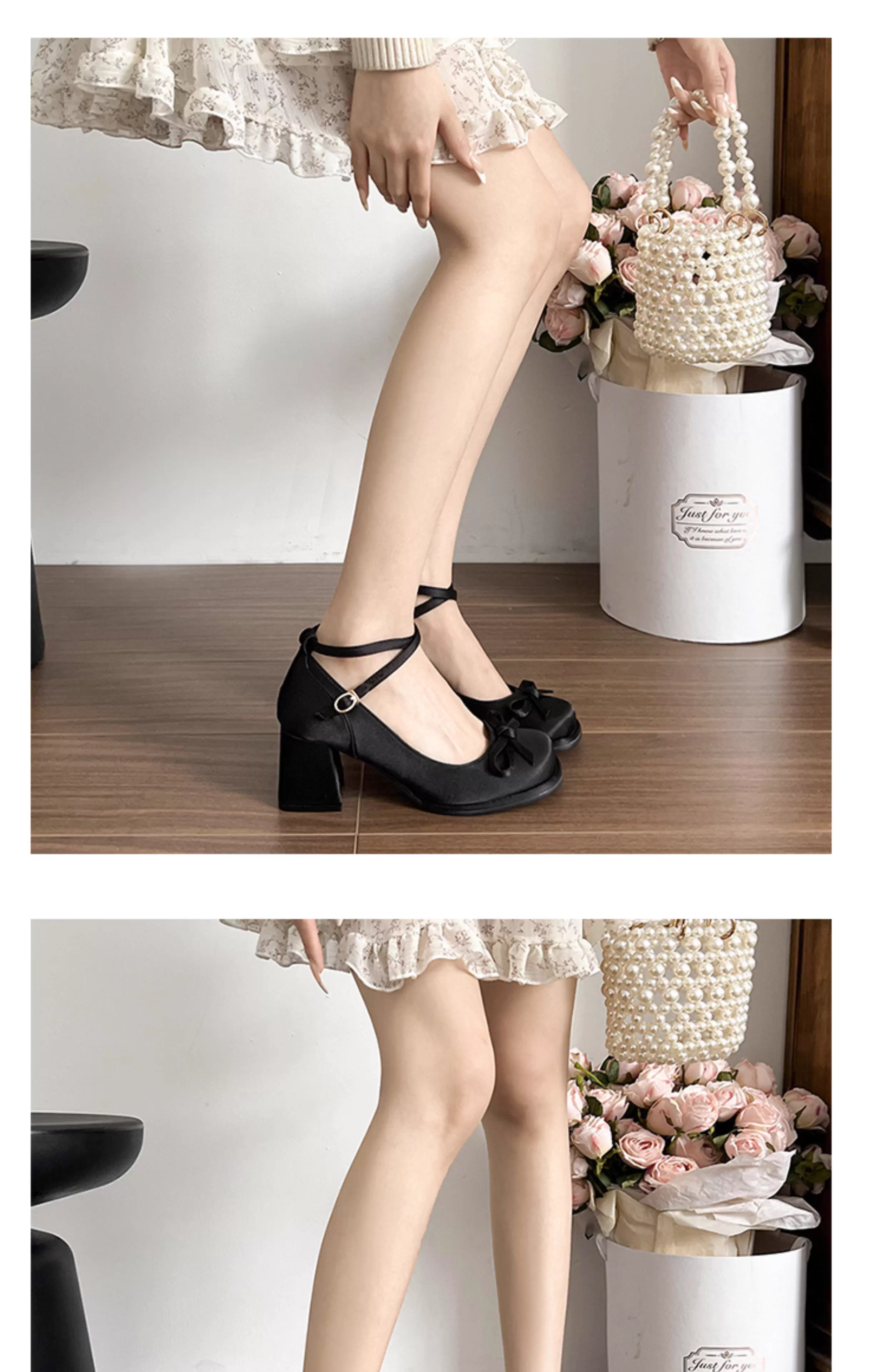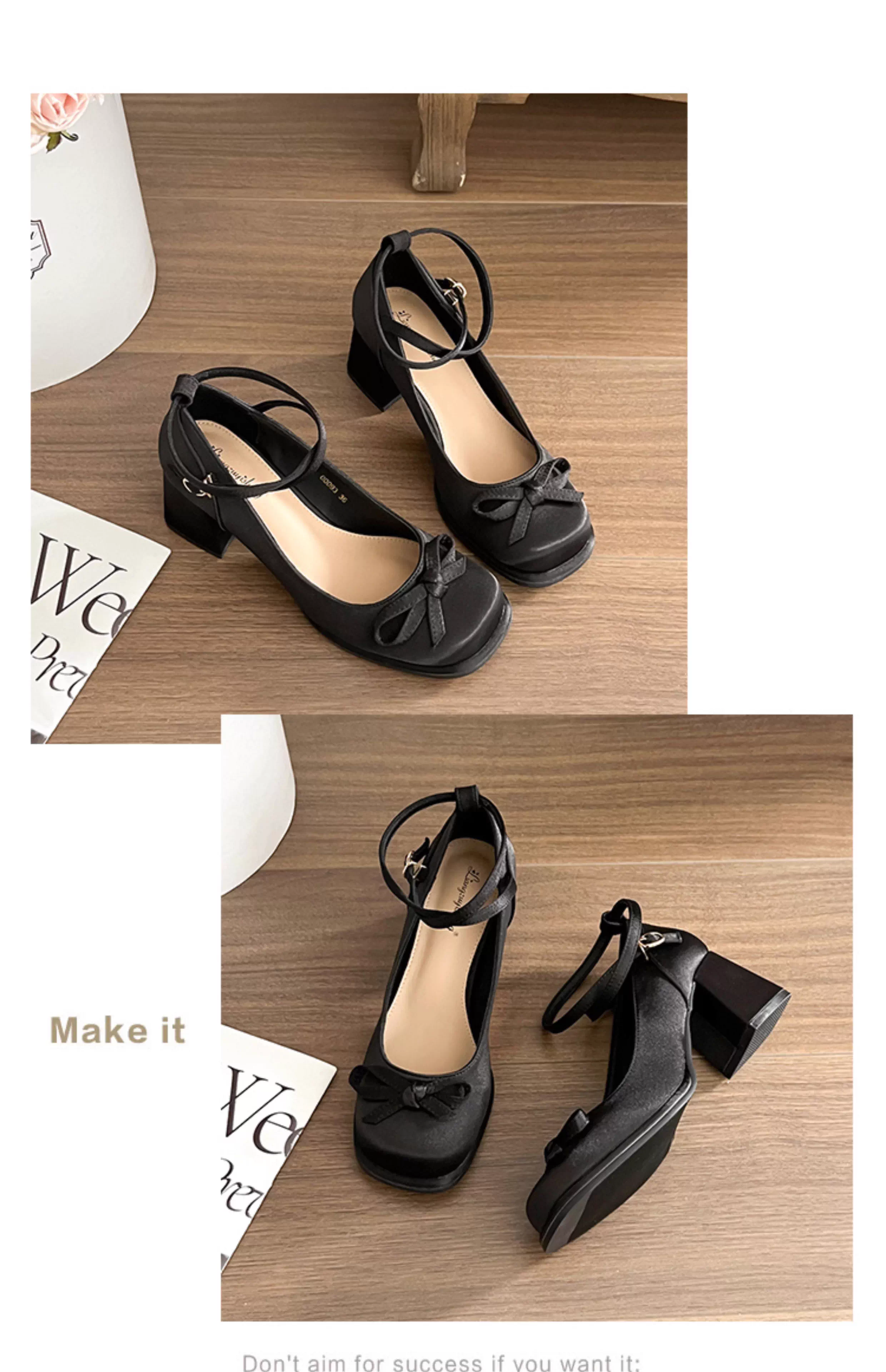 - Giày cao gót đế thô miệng nông kiểu Pháp màu đen dành cho nữ, kiểu thu mới 2025, phối cùng chân váy, giày cao gót Mary Jane cổ điển.