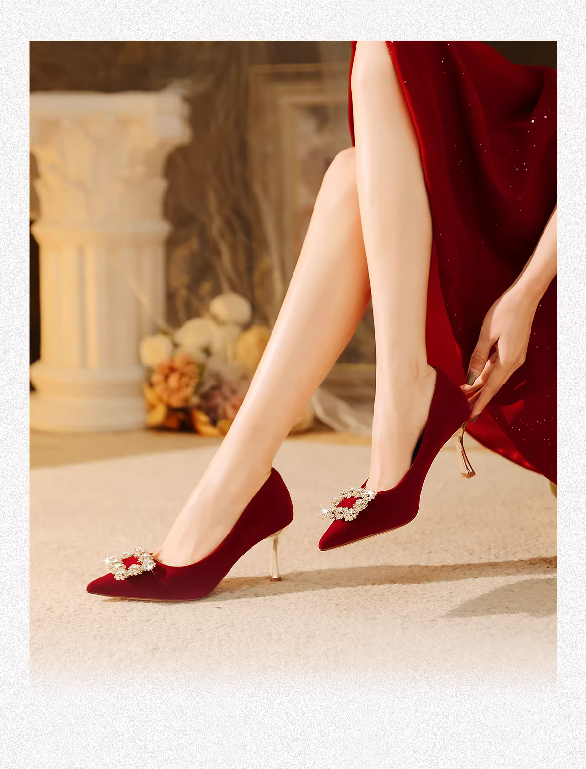 - Giày cao gót đỏ Daphne dành cho nữ, mẫu mới xuân 2025, giày cưới phối với váy Xiuhe, giày cô dâu, giày dự tiệc, giày đơn dành cho nữ