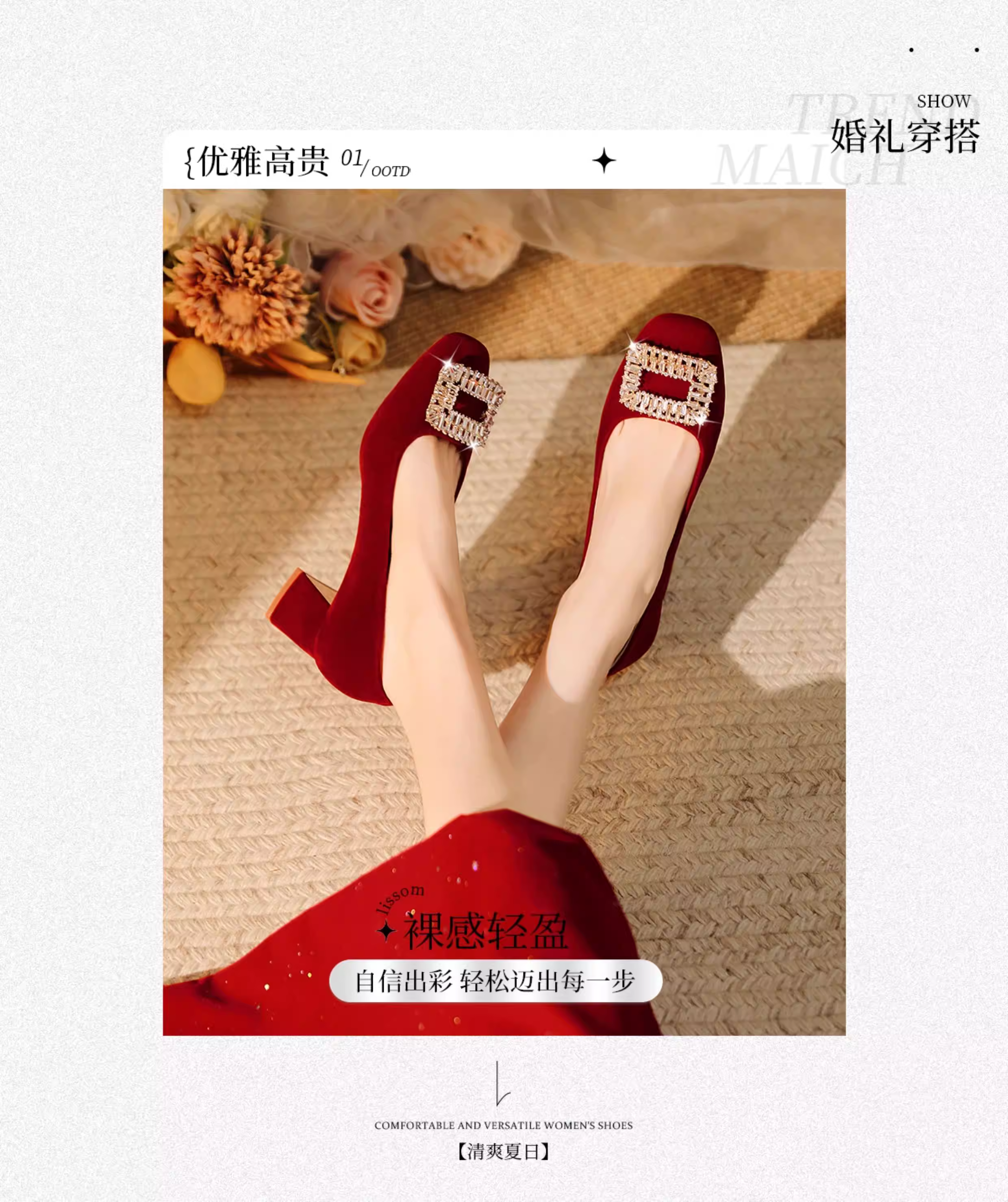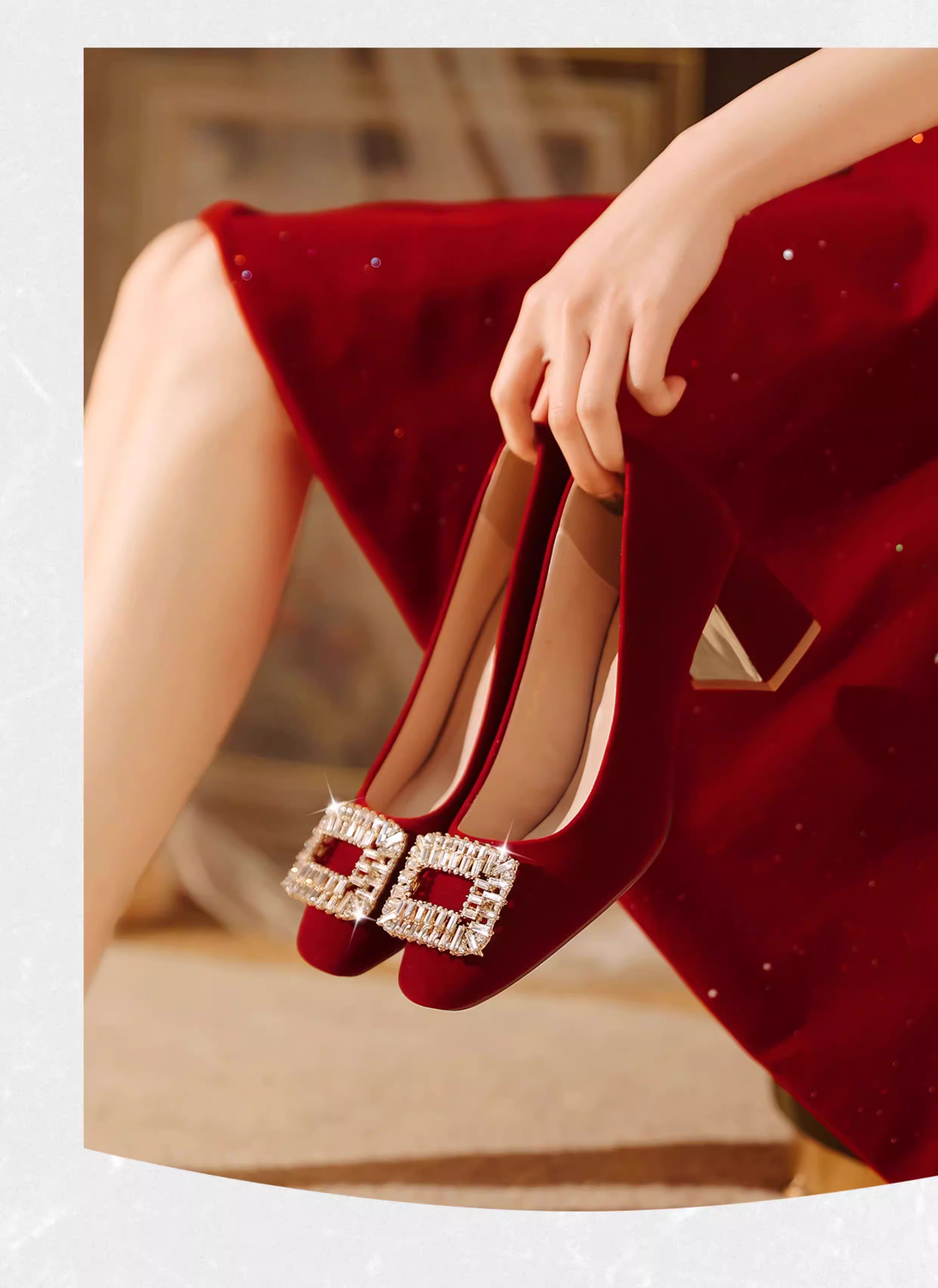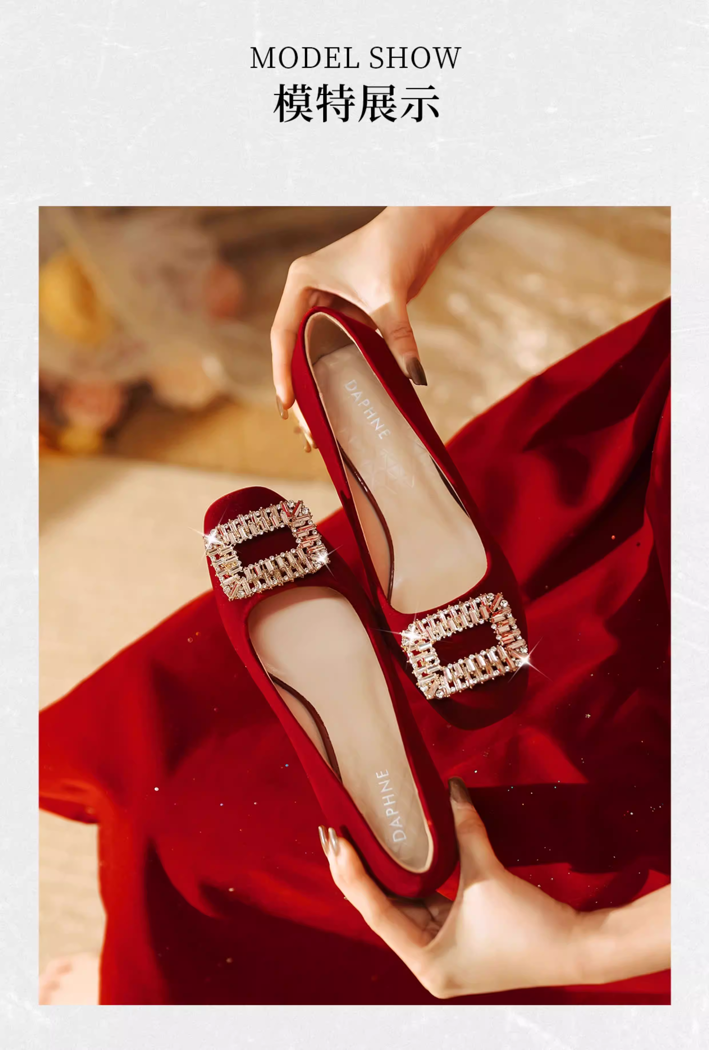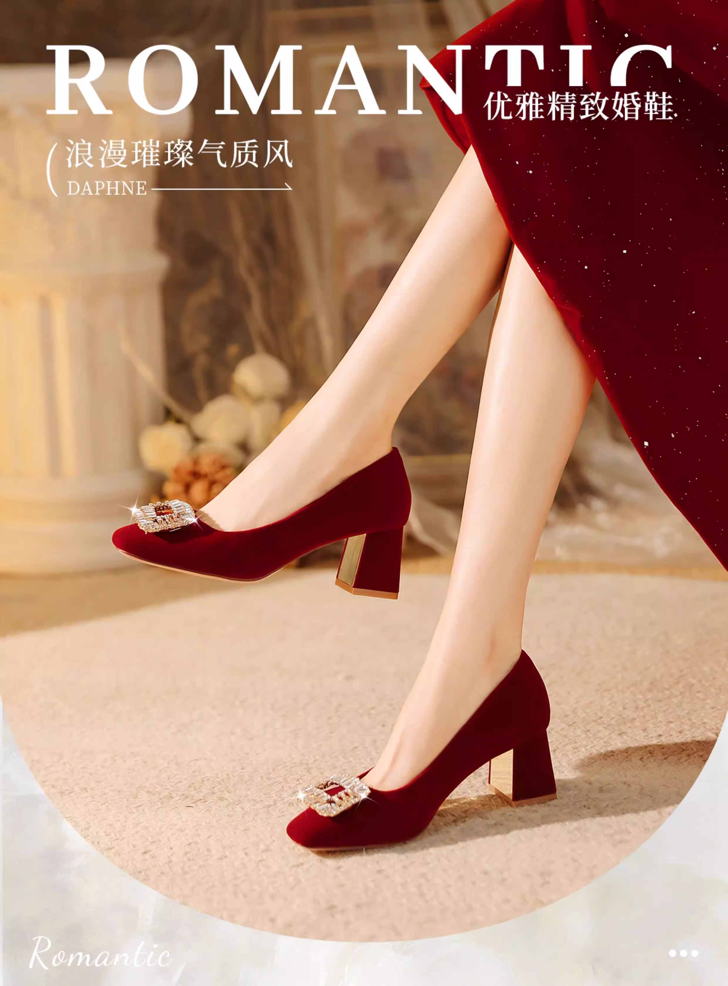 - Giày cao gót đỏ Daphne nữ 2025 kiểu Pháp mới mùa thu, gót thô, giày đính hôn, phong cách mùa thu, giày cưới Xiuhe