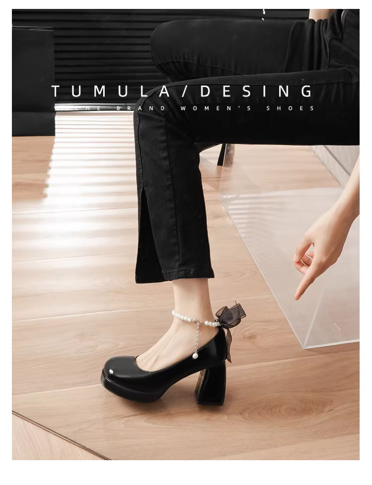 - Giày cao gót, giày cưới nữ, giày Mary Jane nơ ngọc trai kiểu Pháp, giày đế dày chống thấm nước, giày phù dâu thanh lịch