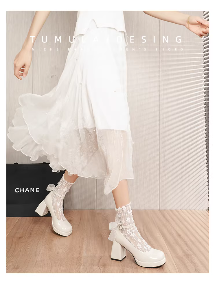 Giày cao gót, giày cưới nữ, giày Mary Jane nơ ngọc trai kiểu Pháp, giày đế dày chống thấm nước, giày phù dâu thanh lịch