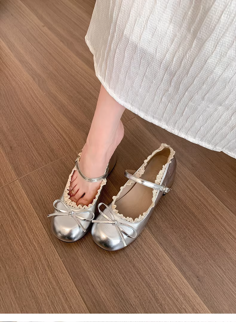 - Giày cao gót kiểu ballet Pháp màu bạc dành cho nữ, giày Mary Jane tăng chiều cao mùa thu mới năm 2025.