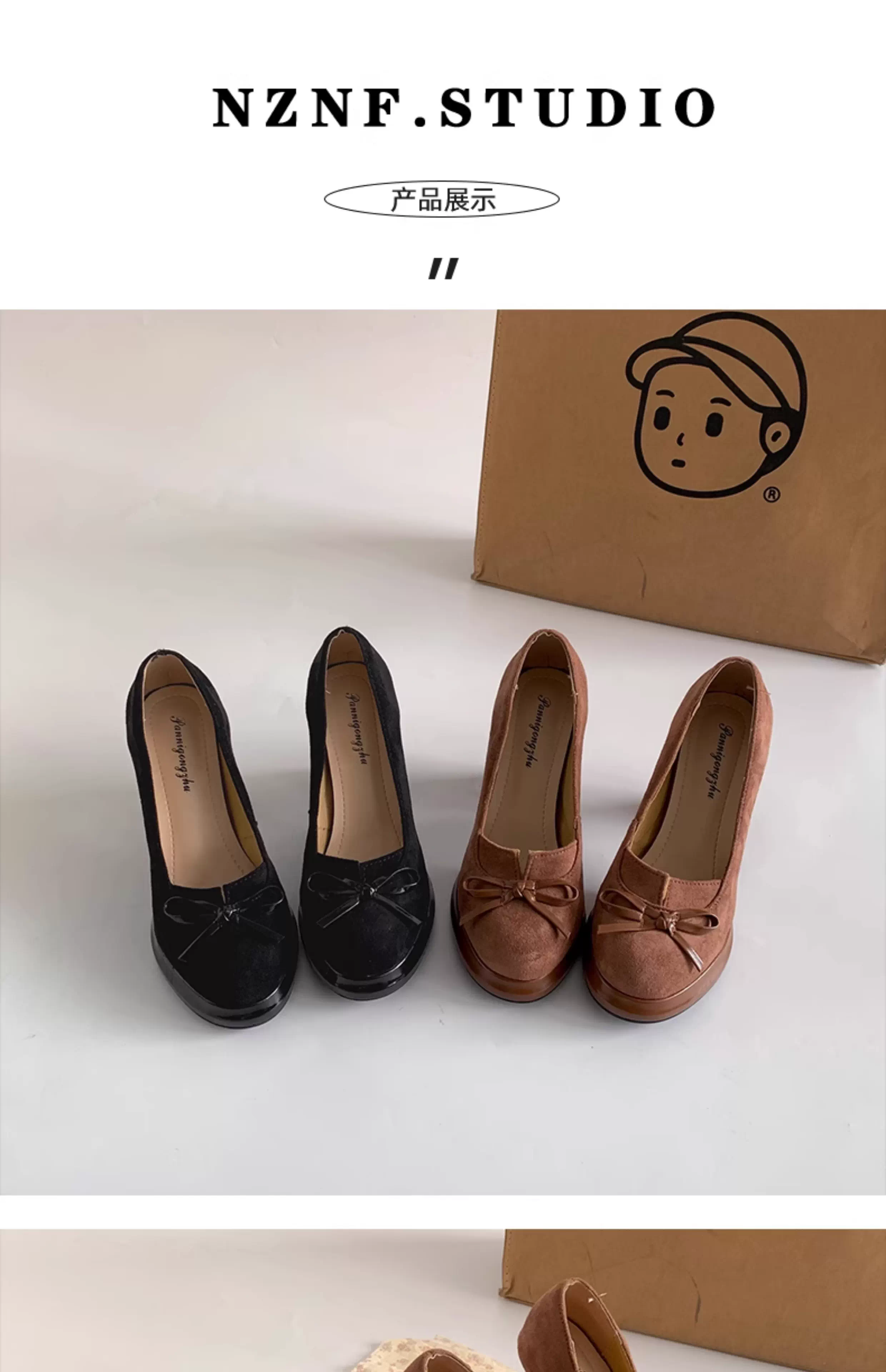 Giày cao gót kiểu Pháp chunky màu đen dành cho nữ, mẫu mới mùa thu 2025, đa năng, mũi tròn, tăng chiều cao, kiểu Mary Jane.