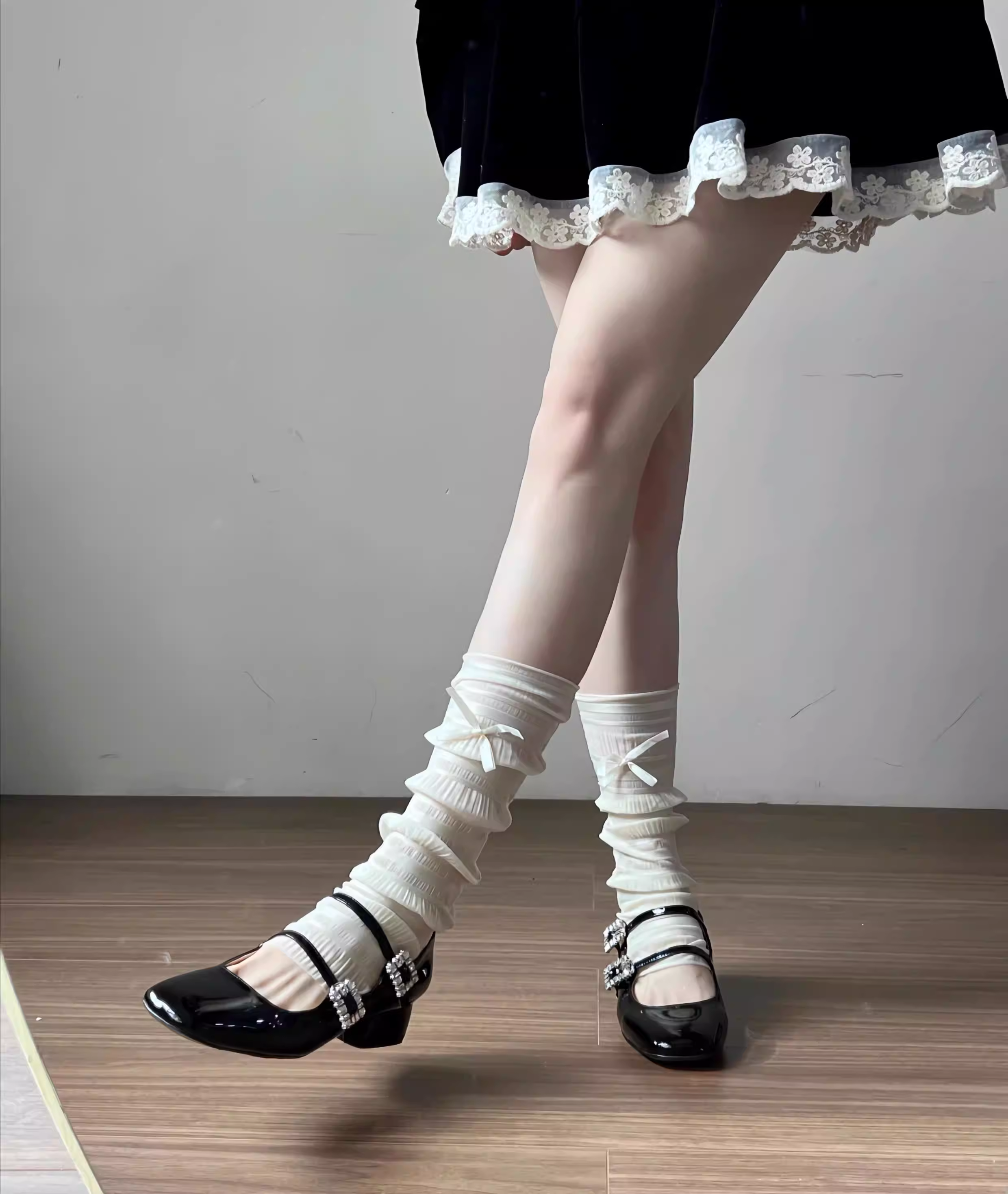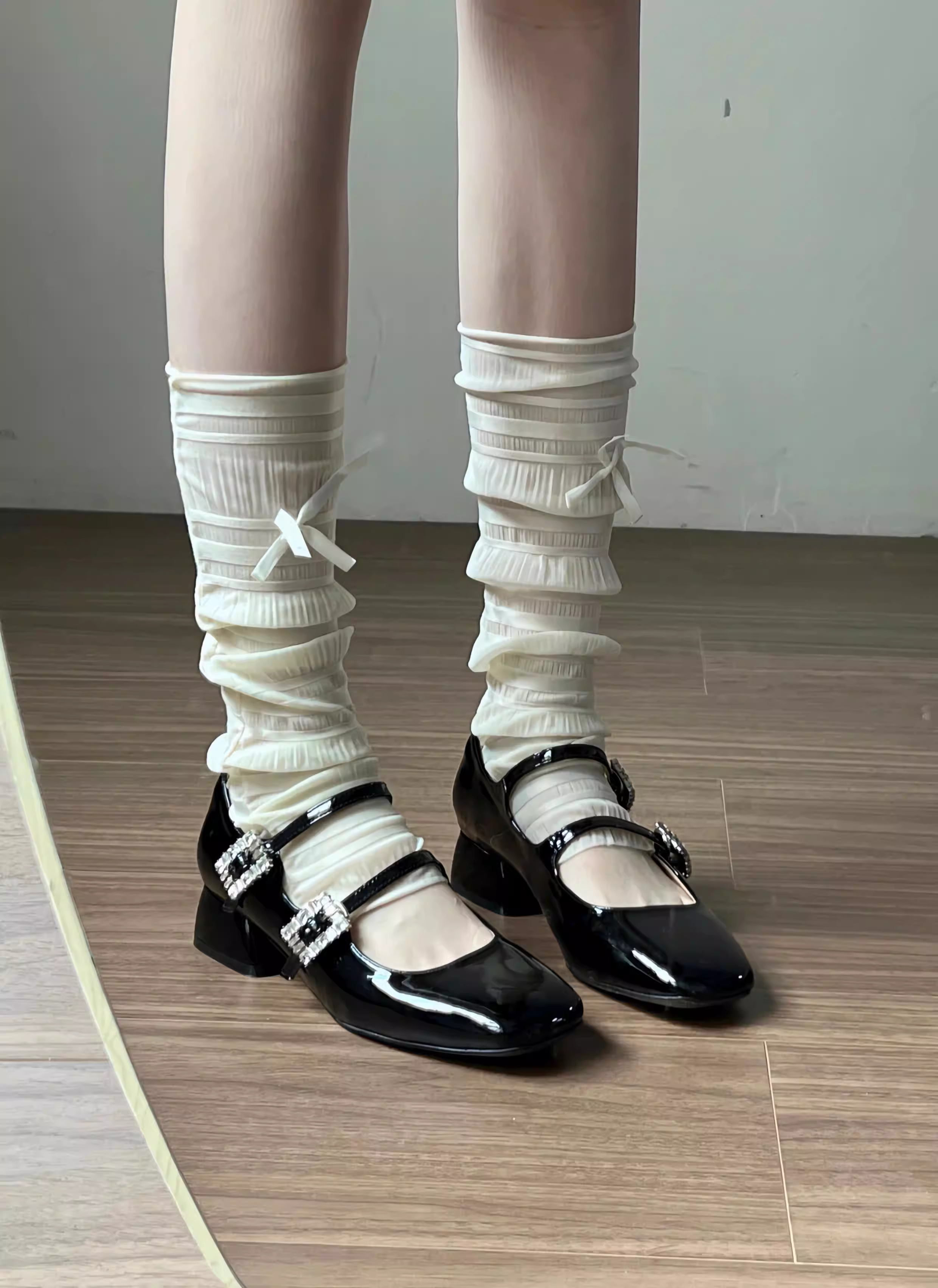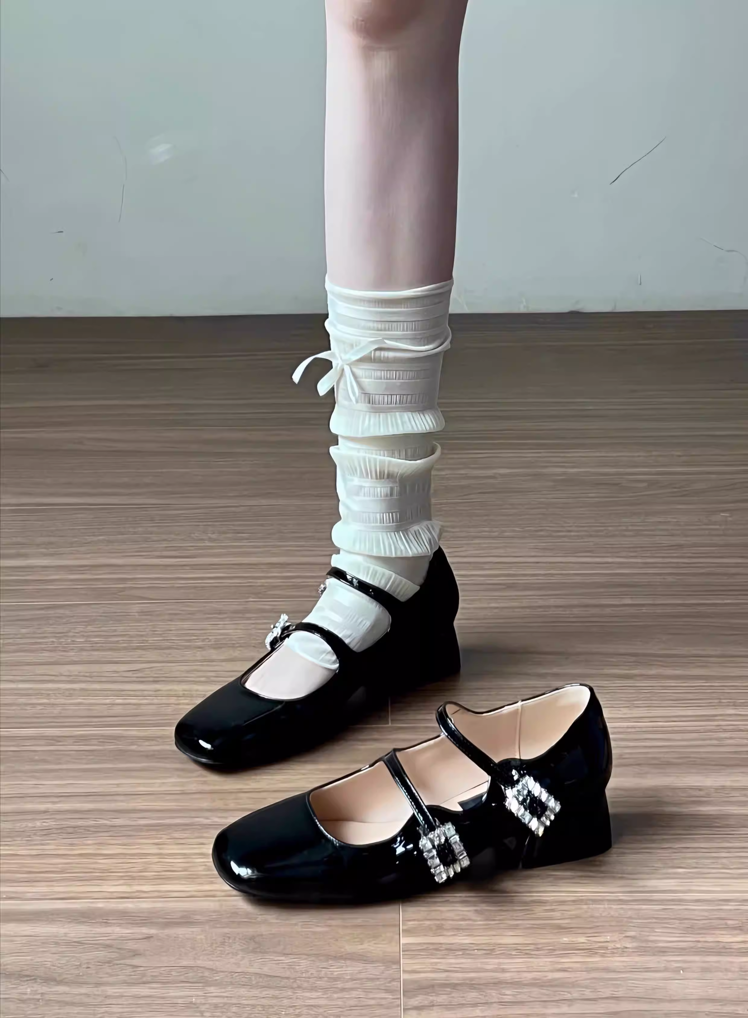 - Giày cao gót Mary Jane mũi vuông da cừu thật, đính đá, gót thô, kiểu Pháp, phong cách dạ hội cổ điển, giày da nhỏ dành cho nữ