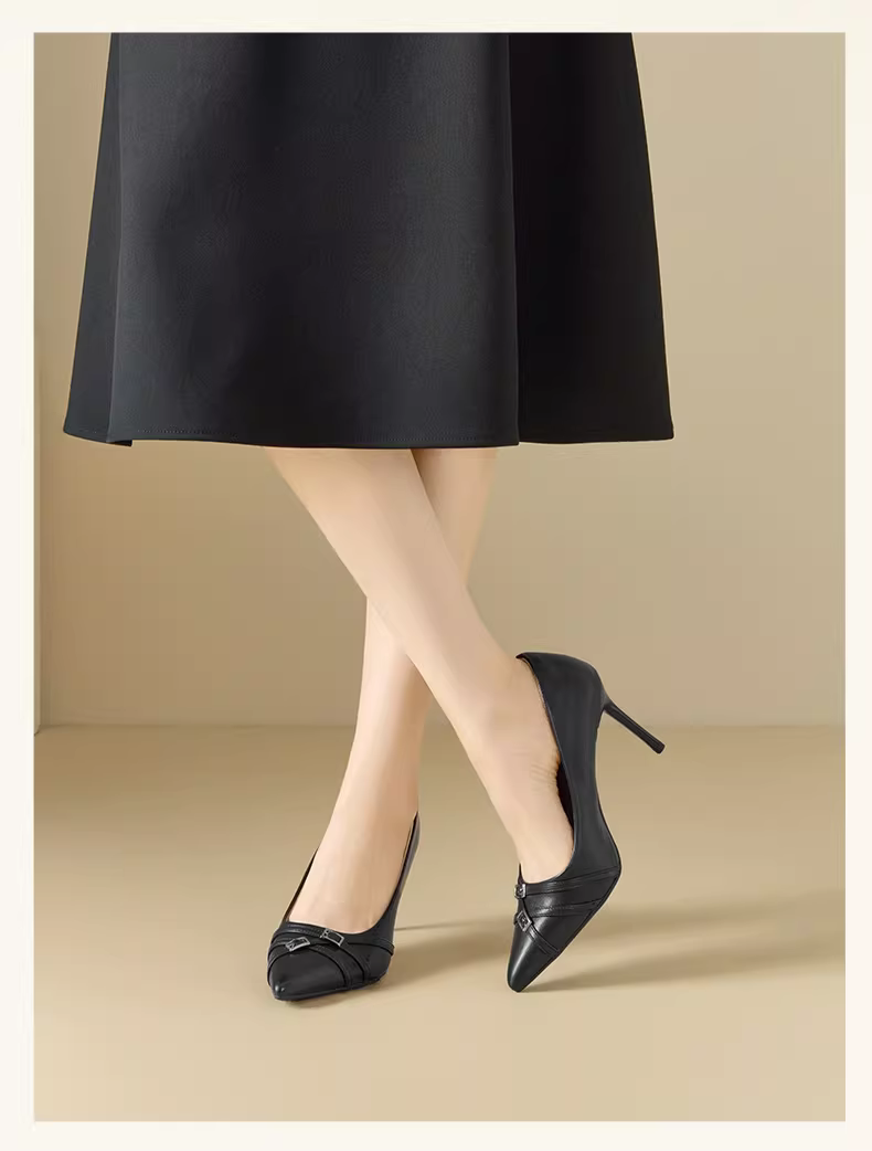 Giày cao gót mũi nhọn màu trắng Dadong dành cho nữ, gót nhọn, kiểu Pháp xuân thu mới 2025, giày đơn thanh lịch và thoải mái dành cho nữ.