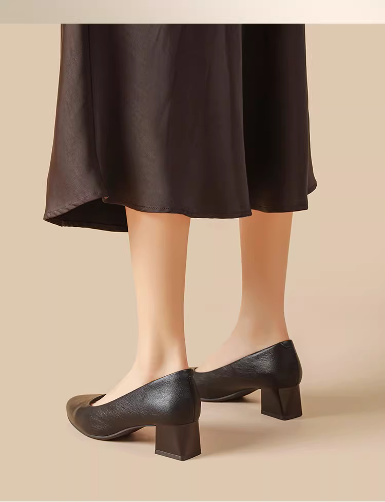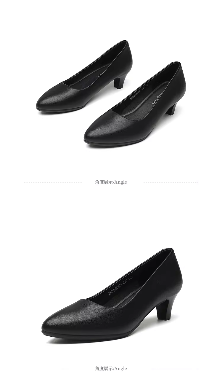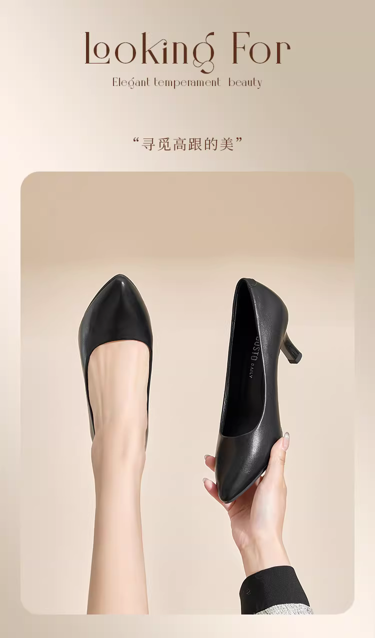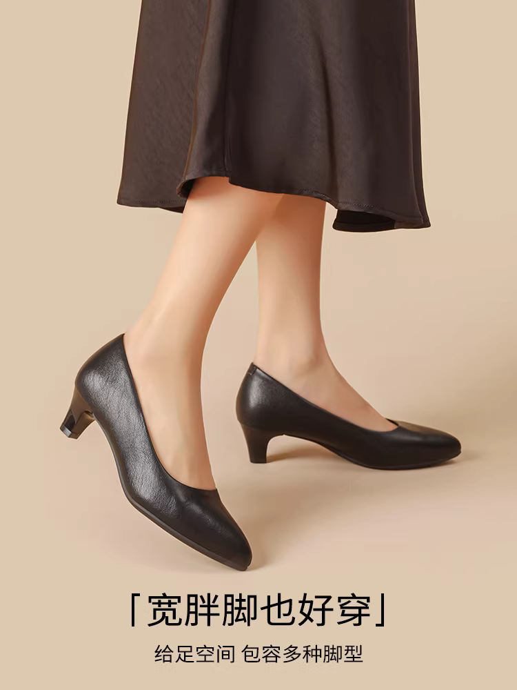 - Giày cao gót nữ Dadong đen thanh lịch, kiểu dáng đơn giản, mùa thu năm 2025, giày công sở, giày đi làm, mũi nhọn, gót thô, gót cao