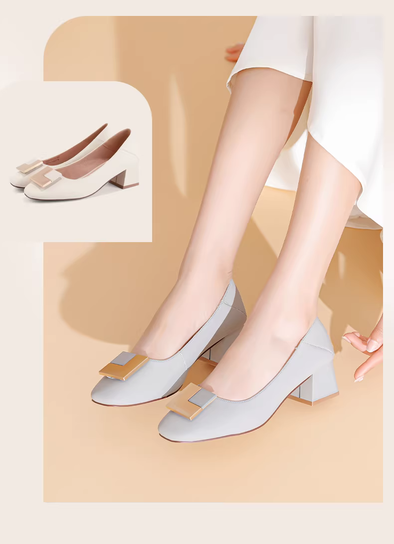 - Giày cao gót nữ Daphne da thật mùa thu 2025, kiểu dáng thanh lịch, gót vuông, đế thấp, đi làm, dành cho nữ